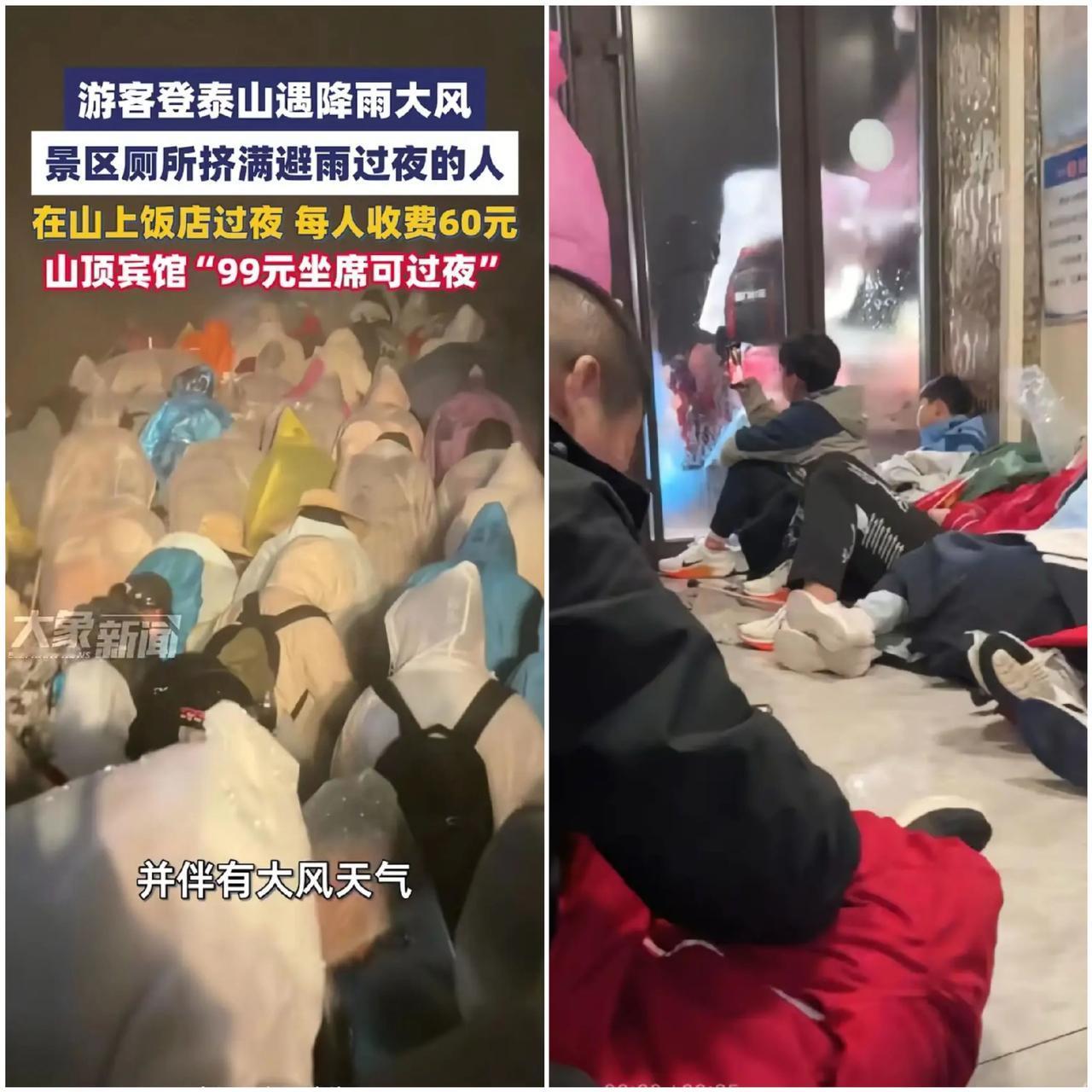 泰山你真够泰山,叫我如何再爱你。 10月2日至3日凌晨,有多名爬泰山的游客发视频称国庆长假期间来登山的人非常多,山顶连日下雨,冷风+低温,低至零度。连厕所都被挤满人,在山上饭店过夜每个要缴60元给一个小凳子,山顶宾馆提供99元坐席过夜,这听起来好像很暖心,仔细想想原来是99元坐席过夜,好一招雁过拔毛呀。 美其名曰含泡面和充电,可谁愿意花近百元买个硬板凳挨冻?标间炒到上千就算了,连躲雨的角落都要明码标价,对比开封景区免费发50万件雨衣的格局,差距真不是一点半点。 景区说“明码标价无投诉”,可游客喊着“想回家”的失望,比寒风还刺骨。真以为靠“稀缺性”就能一直收割?游客要的是安全感,不是被当成待宰的羔羊。 景区的口碑从来不是靠涨价堆出来的,而是危难时的温度。你觉得这种“应急收费”该被理解吗?