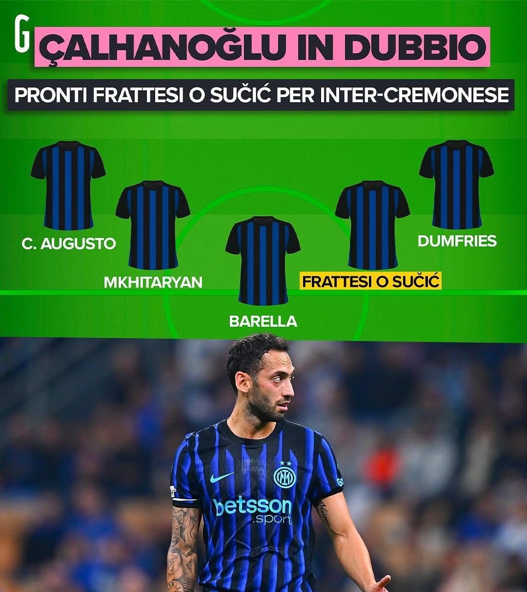 国际米兰今晚谁将首发?弗拉泰西和苏西奇竞争首发位置 恰尔汗奥卢已经连续比赛好几