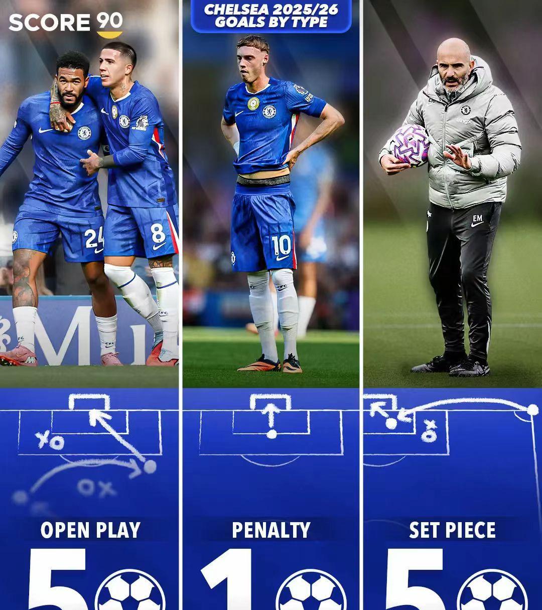 阵地战进了4个,定位球进了7个,阿森纳真的不走寻常路 新赛季英超各支球队的进球类型分布图,从阵地战、点球、定位球进行分类的。 曼城应该是比较豪气的一个,14个进球全部来自于阵地战 ,没有点球、没有定位球。 利物浦也属于这种类型,10个阵地战进球,不过利物浦的绝杀次数太多了,太离谱了。 切尔西的进球风格有点像阿森纳了,5个阵地战进球、1个点球、5个定位球。 至于曼联,从进球数上就少了一半。
