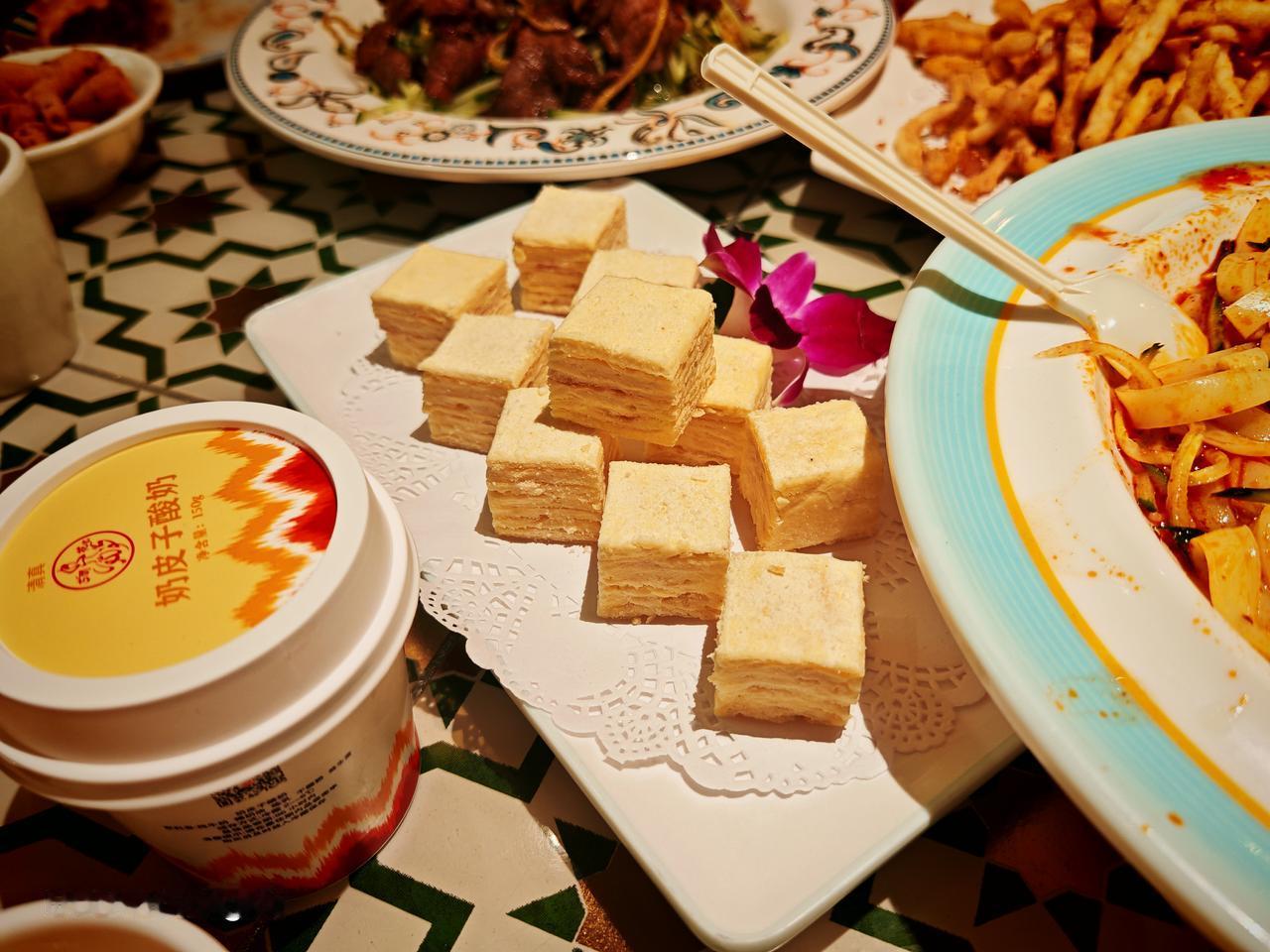 打卡一家新疆菜连锁小馆—古丽花儿。 奶酪、炸蘑菇、牛肉炒面和凉皮,味道都很地道