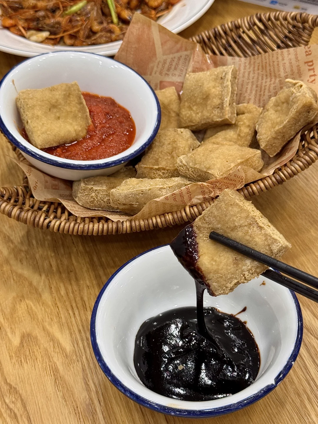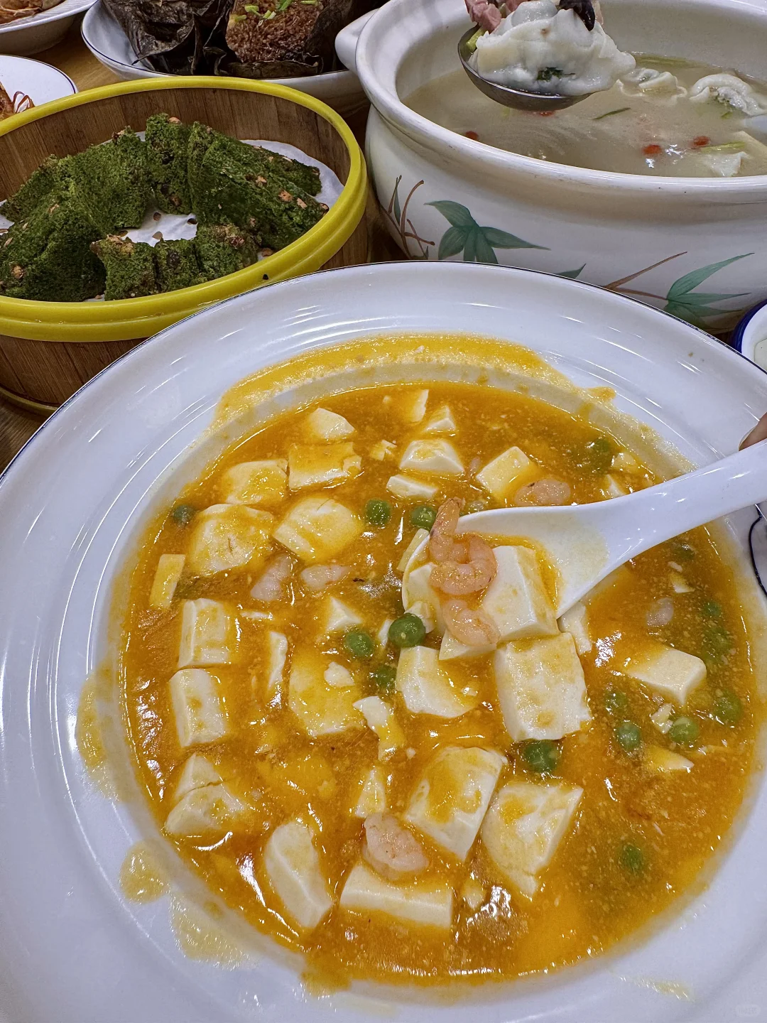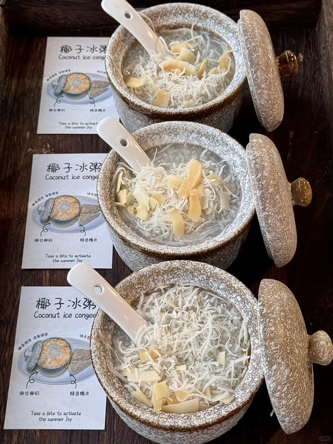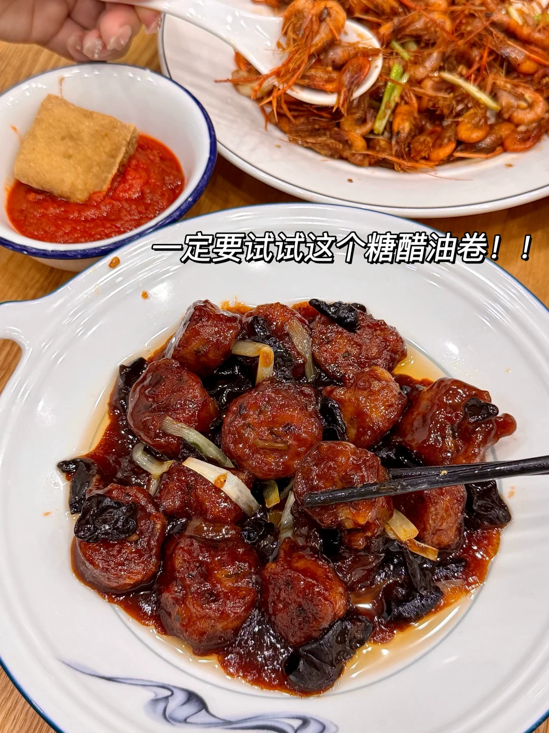 糖醋油卷,勾芡浓郁酸甜弹牙 一整颗基本全是肉好过瘾!油爆虾米咸香入味,咬一口嘎吱脆真的巨巨下饭hh🤤……没想到还吃到了椰子冰粥和金鱼气泡水!尊嘟好看又好吃~