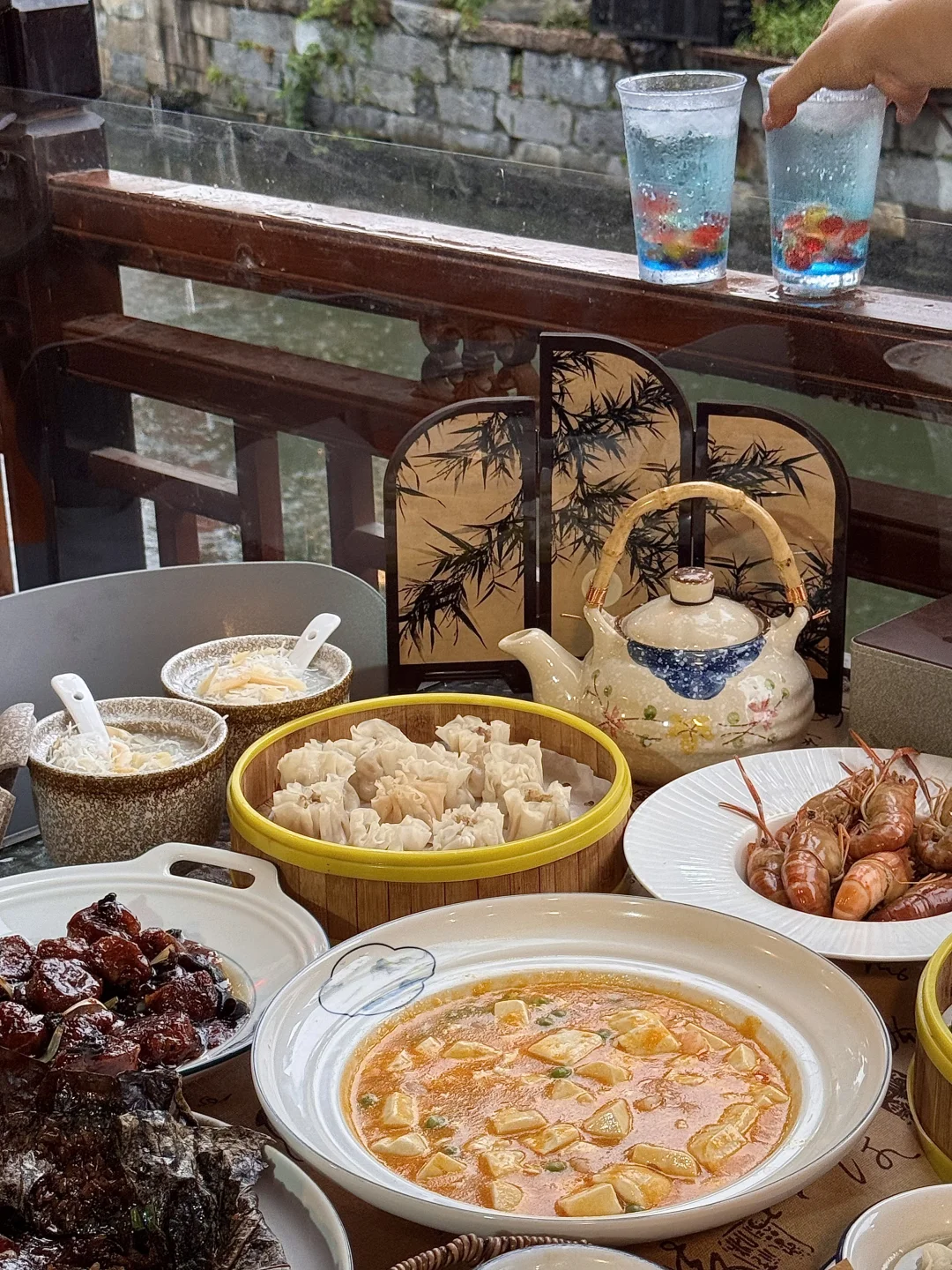 感谢嘉兴出租车师傅推荐!终于避开网红店了…这家大部分都是回头客!靠着附近居民口口相传火起来的,临窗沿河好有江南意蕴 我们点了满满一桌都没踩雷😭!