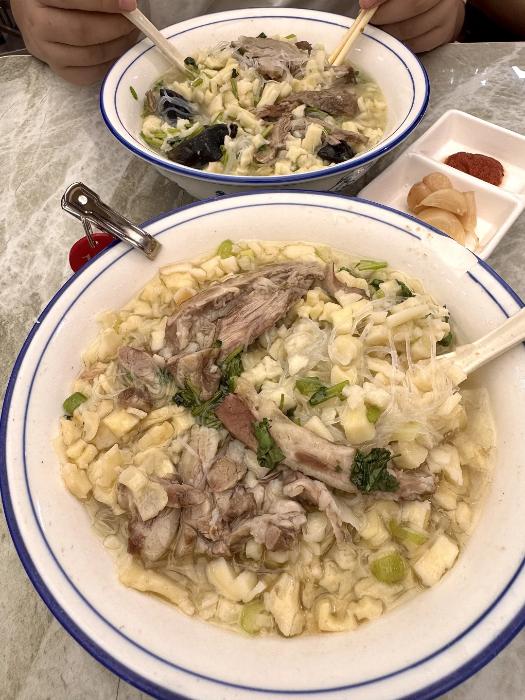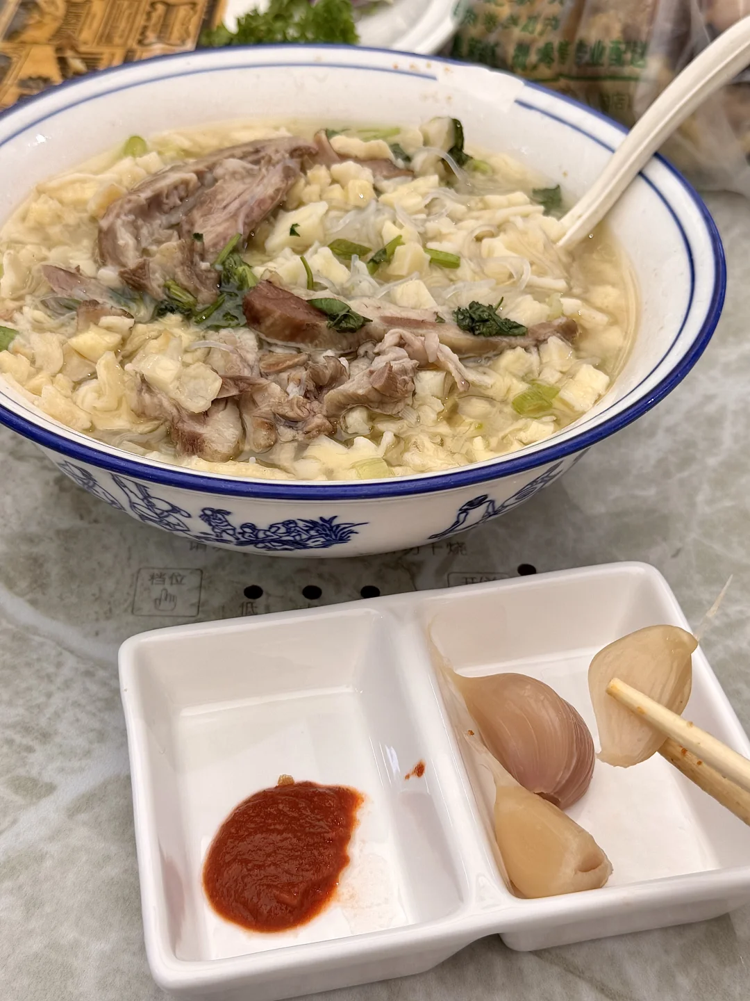 羊肉泡馍热气腾腾的 可以自己撕成馍丁或者饼块~肉很嫩料巨多!羊肉、羊血、木耳、豆腐…还有小炒泡馍香香辣辣也好绝!一定要配上一口糖蒜!一口下去真的惊艳!!随手点的芝麻里脊、胡芦鸡也好好吃!