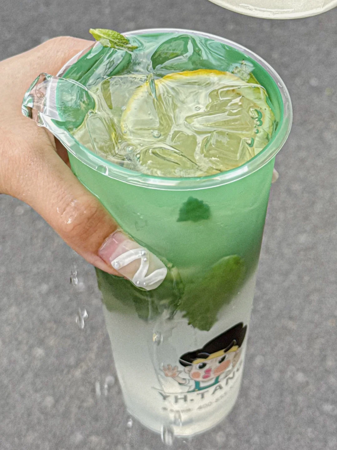 满杯新鲜薄荷叶➕大块鲜柠檬片🍋