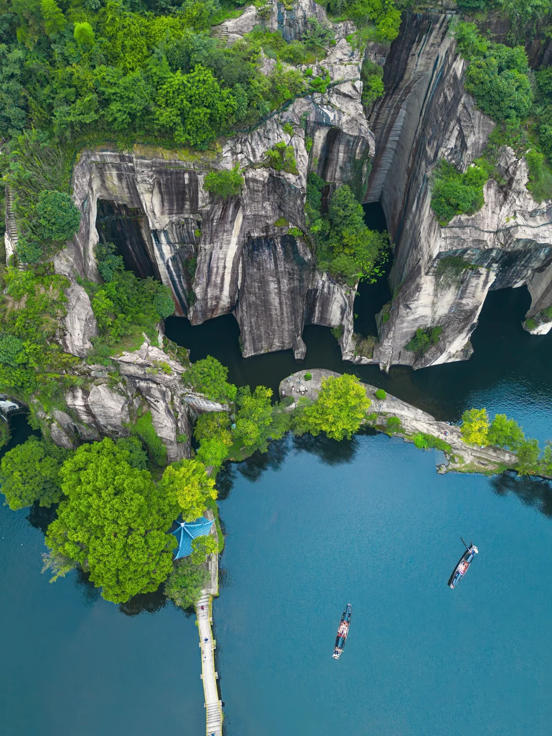 跟风最成功的一次,高耸在湖边的黑色悬崖仿佛水墨画一般
