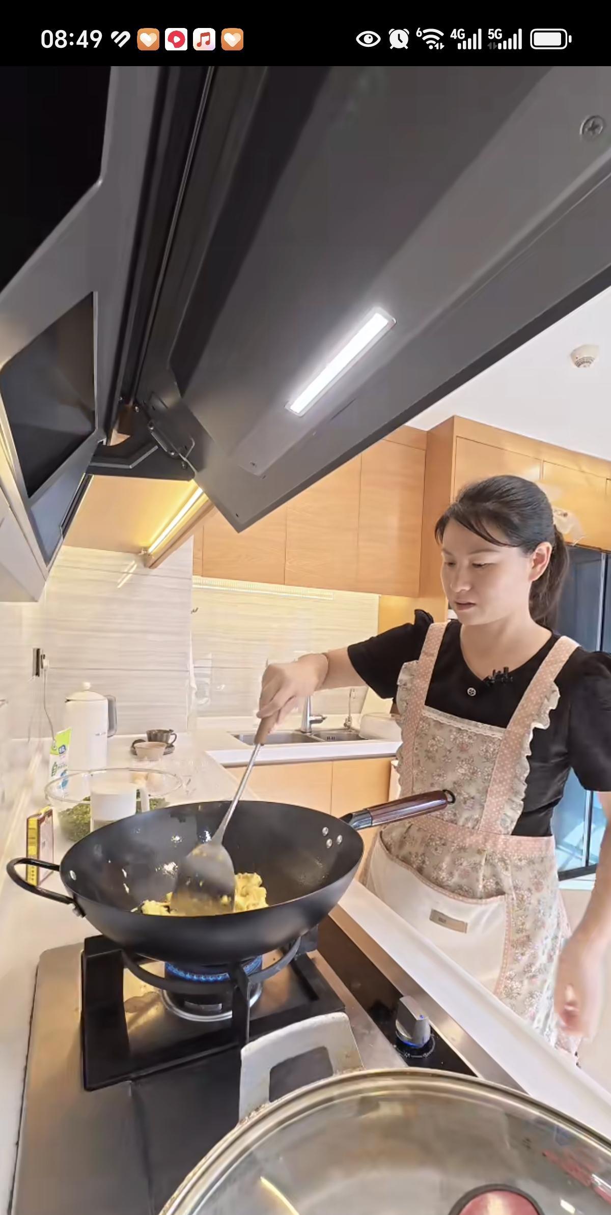 小娜做水煎包,红姐直夸太厉害了。 小娜老爹在菜地里割了点韭菜回来,小娜喊红姐一起
