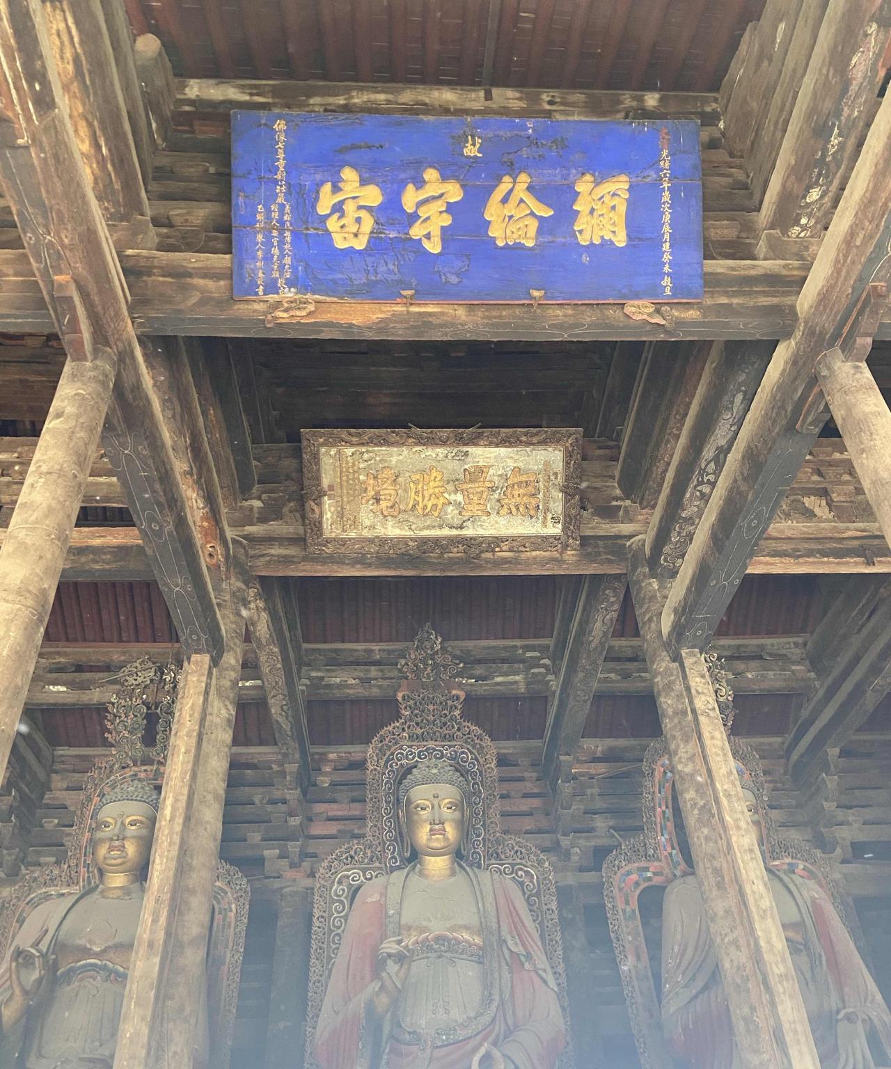 不用买菜做家务的日子结束了,又回到了自己最熟悉的地方。 假期锦州三天游,玩的时间只有两天,其他的时间都是在路上。 这两天去了三个地方,第一个站就是红海滩,玩的轻松愉快;第二站是医巫闾山的大花景区,玩得很尽兴,但是也很累;最后一个地方是义县的奉国寺,虽然不大,但是很有看头。 奉国寺始建于1020年,是辽朝第六位皇帝耶律隆绪在他的母亲肖绰老家建造的皇家寺院,而肖绰就是我们平日里所熟知的辽国太后萧燕燕,肖太后。 奉国寺是与山西大同的华严寺和天津蓟州的独乐寺齐名的辽代三大寺院之一,虽然经过朝代更迭,战乱毁损,但是奉国寺的大雄殿几乎完整地保存了下来,虽然漆身斑驳,但更显其沧桑古朴。在这里还能看到几乎绝迹的辽代建筑彩画和庄严肃穆的七佛彩塑。 奉国寺殿内梁柱上的“飞天”图案颇为突出,引人注目,和你以前在敦煌所看到的飞天不同: 这些飞天虽然也身姿轻盈,衣带飘飘,在云端翩翩起舞,美而不言,但却是男儿之身。 大雄殿七世佛背后的倒坐观音,因为像前有方有瓶和海东青而得名鹰瓶观音,是王家卫电影《一代宗师》的取景地,其形象也是男子之貌。 这里的结束员讲解的非常细腻,但是因为知识体量太大,我一时半会儿还消化不了,但是我觉得来到这里的所有游客,都怀着一颗朝圣之心,整个游览过程,没人大声喧哗,没人不遵守秩序,没人乱扔杂物,整个景区秩序井然,给人留下了非常深刻的印象。