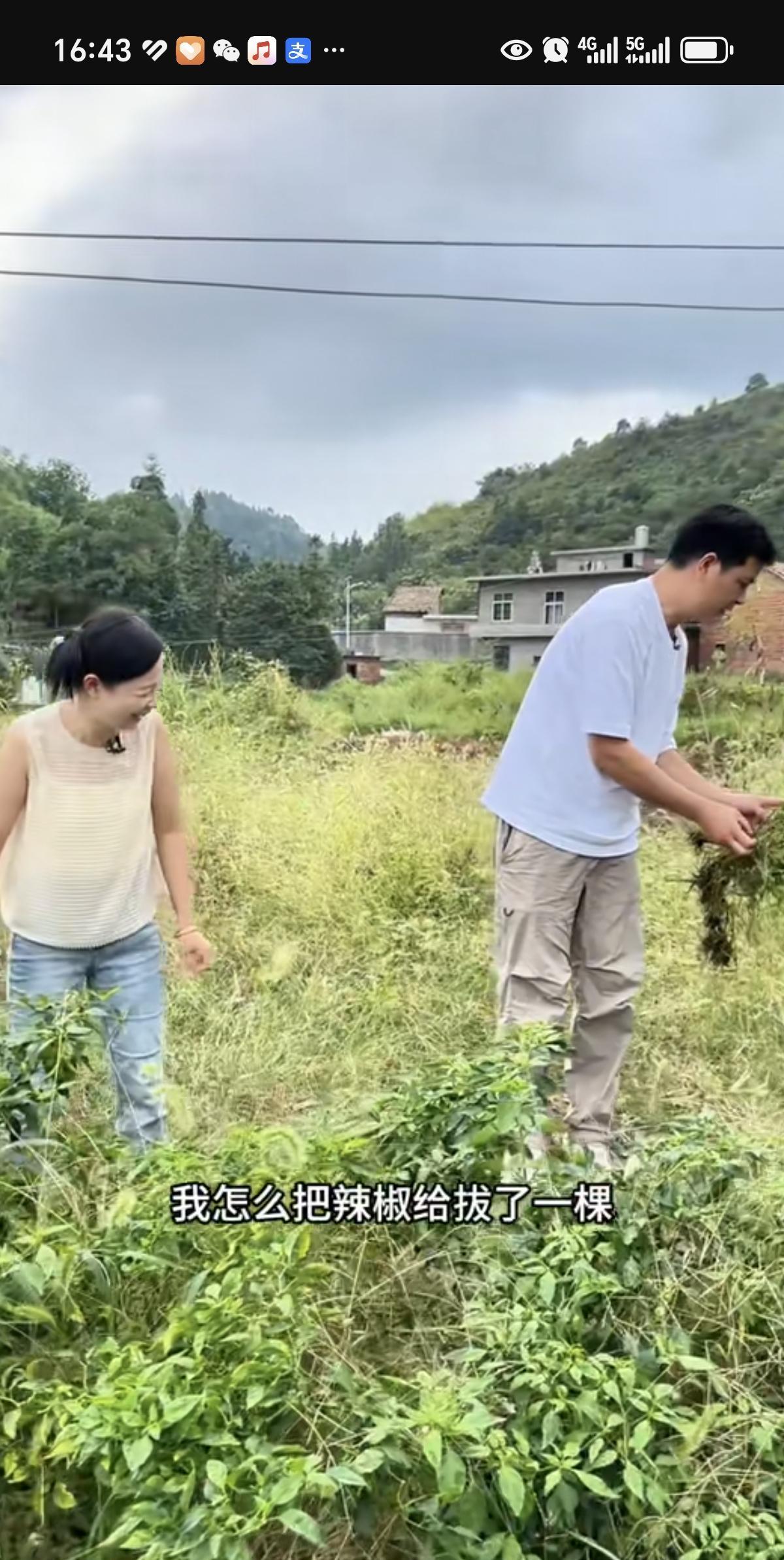 徐敏想帮妈妈把辣椒地里的草拔一拔,结果帮倒忙[捂脸]。 徐敏和冷眉在老家闲逛,徐敏说那辣椒好像是妈种的。 冷眉说是的,那天在那摘辣椒的。 徐敏说我把这辣椒地里的草给拔一拔。 冷眉就跟他一起来拔了,突然冷眉说,你拔草怎么拔辣椒苗啊,帮倒忙。 徐敏尴尬的笑了,要被他妈妈骂了[偷笑]。 当然,他妈妈不可能骂他啦,徐敏眼里还是比较有活的。