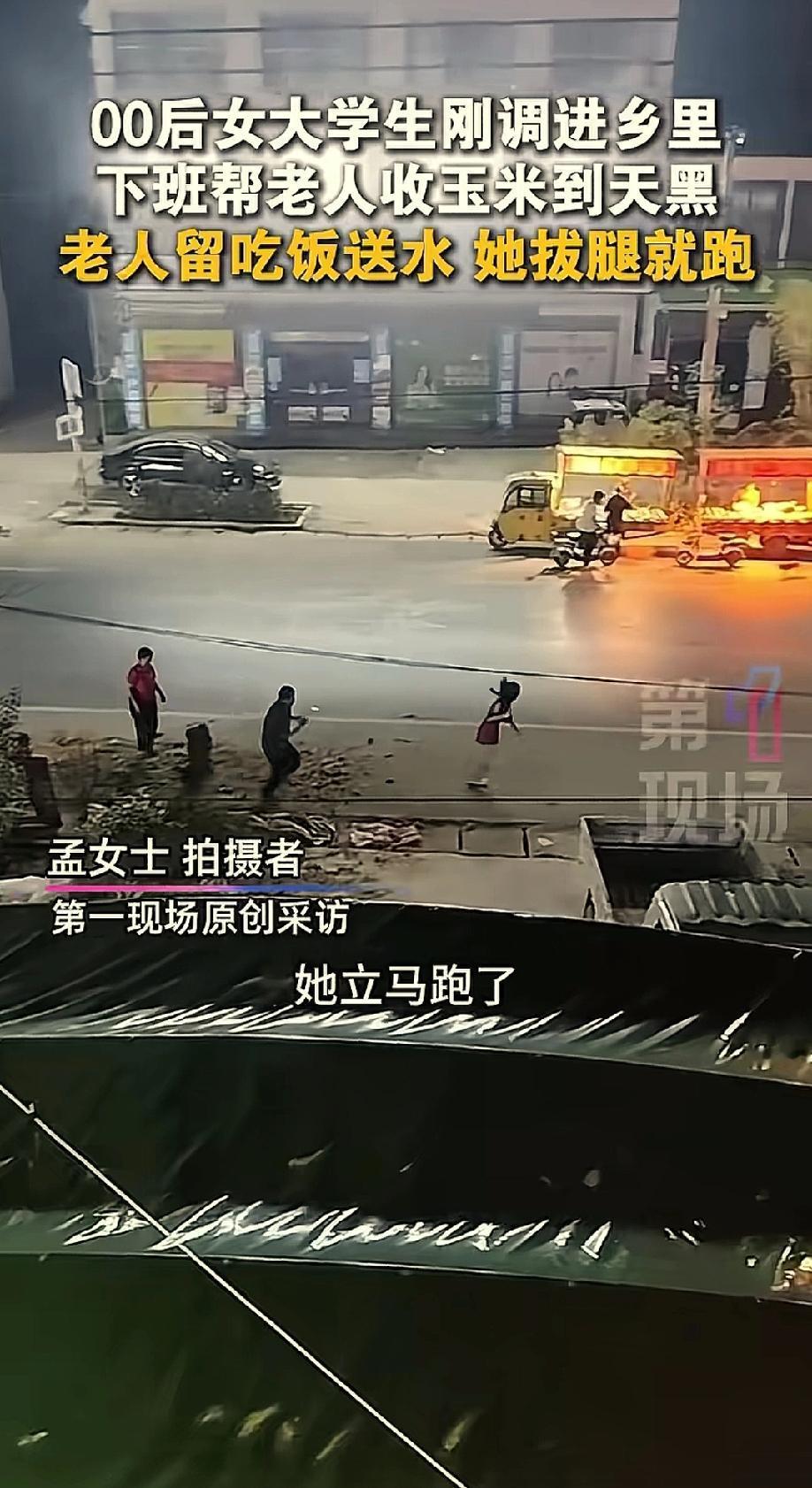 开封杞县裴村店乡,一位老人拿了罐饮料在追前面一位姑娘,姑娘却边跑边摆手。 不知道情况的,还以为小姑娘是老人的亲戚。原来这姑娘和老人一家并不认识,她是刚调过来的女大学生。 女孩看到老人在往袋子里装玉米,就主动上前去帮忙。老人和她不认识,不好意思让她帮忙。姑娘却说“阿姨,看你累得腰都站不起来了,我来帮你装棒子。” 女孩帮老人装玉米,一直装到天黑,玉米装完后,老人留姑娘在家吃饭,姑娘说不吃就要回去。老人赶忙拿出一罐红牛让姑娘喝,姑娘也不要。老人硬要塞给姑娘,姑娘就拔腿跑了,于是就出现了开头的一幕。 这女孩好善良,看到老人辛苦就主动帮忙,这样的年轻人当村官,村民肯定喜欢。 如果当官的能从基层做起,能够体察民情,了解百姓疾苦,那肯定是被人民拥戴的好官。 信息来源:第一现场