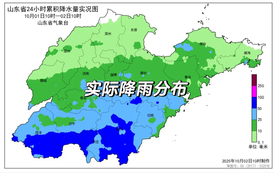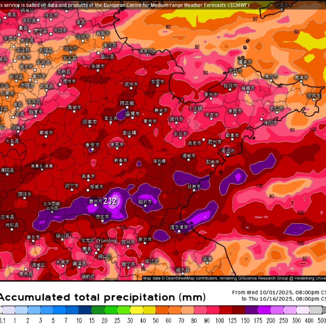 受温带气旋影响,昨天下午至今天上午,山东大部地区再次迎来强降雨,鲁南地区普遍降下大到暴雨局部大暴雨。10月1日10时至2日10时,全省平均降水量为23.2毫米,最大降水量为109.0毫米,出现在菏泽市王丕站。另外,临沂兰陵县下村降雨量为105.5毫米。预计今天下午至夜间我省东部地区降雨仍然较强。