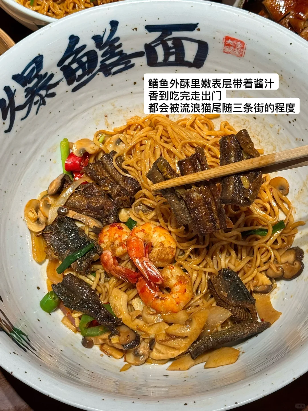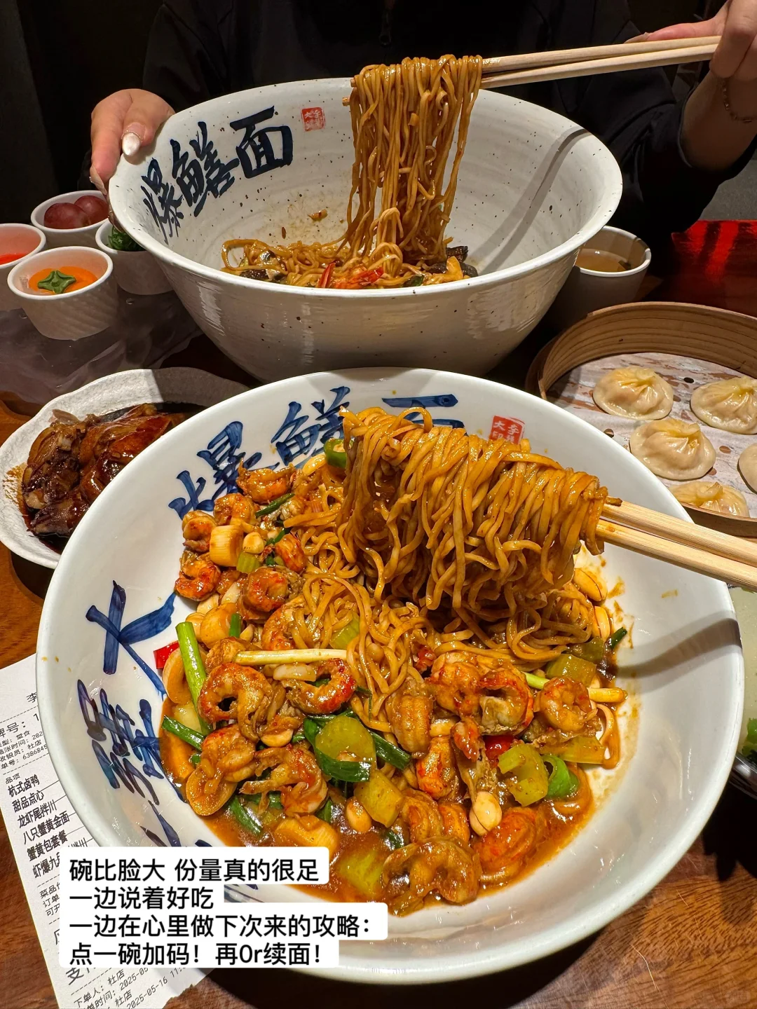 强推这个虾爆鳝面🍜码子先炸后炒外酥里嫩真的巨巨好吃!朋友点的香辣龙虾尾拌川!虾肉很多,浇头浓郁~店里还有一些包点小菜和甜品,味道都不错👍🏻