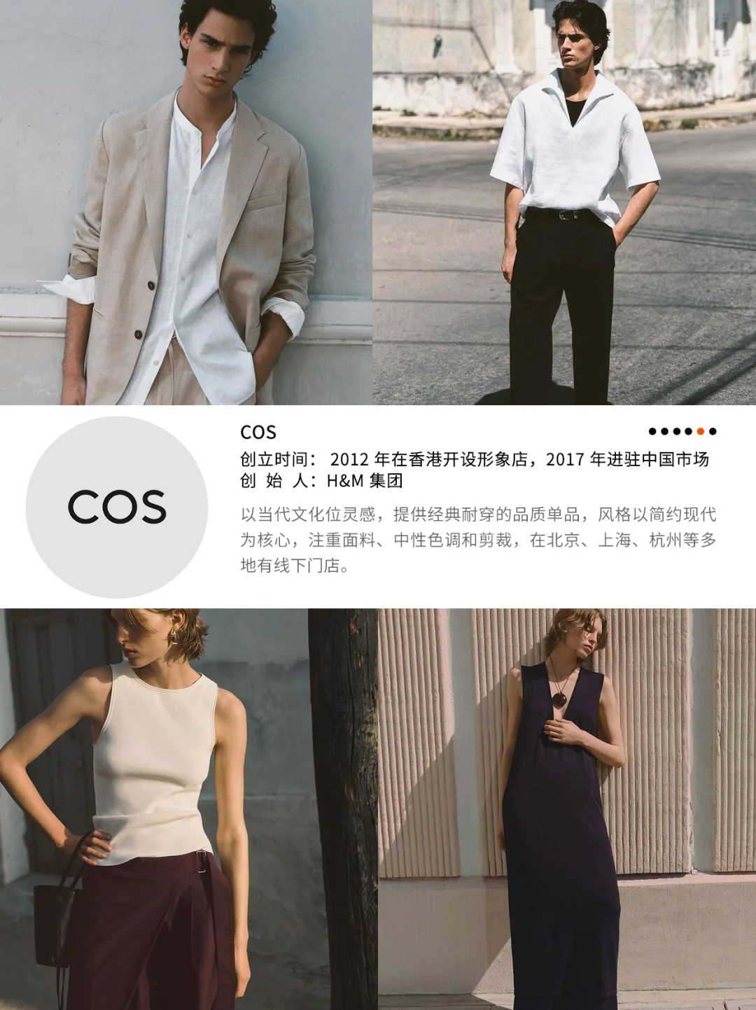 服装风格:以当代文化位灵感,提供经典耐穿的品质单品,风格以简约现代为核心,注重面料、中性色调和剪裁,在北京、上海、杭州等地有门店。
