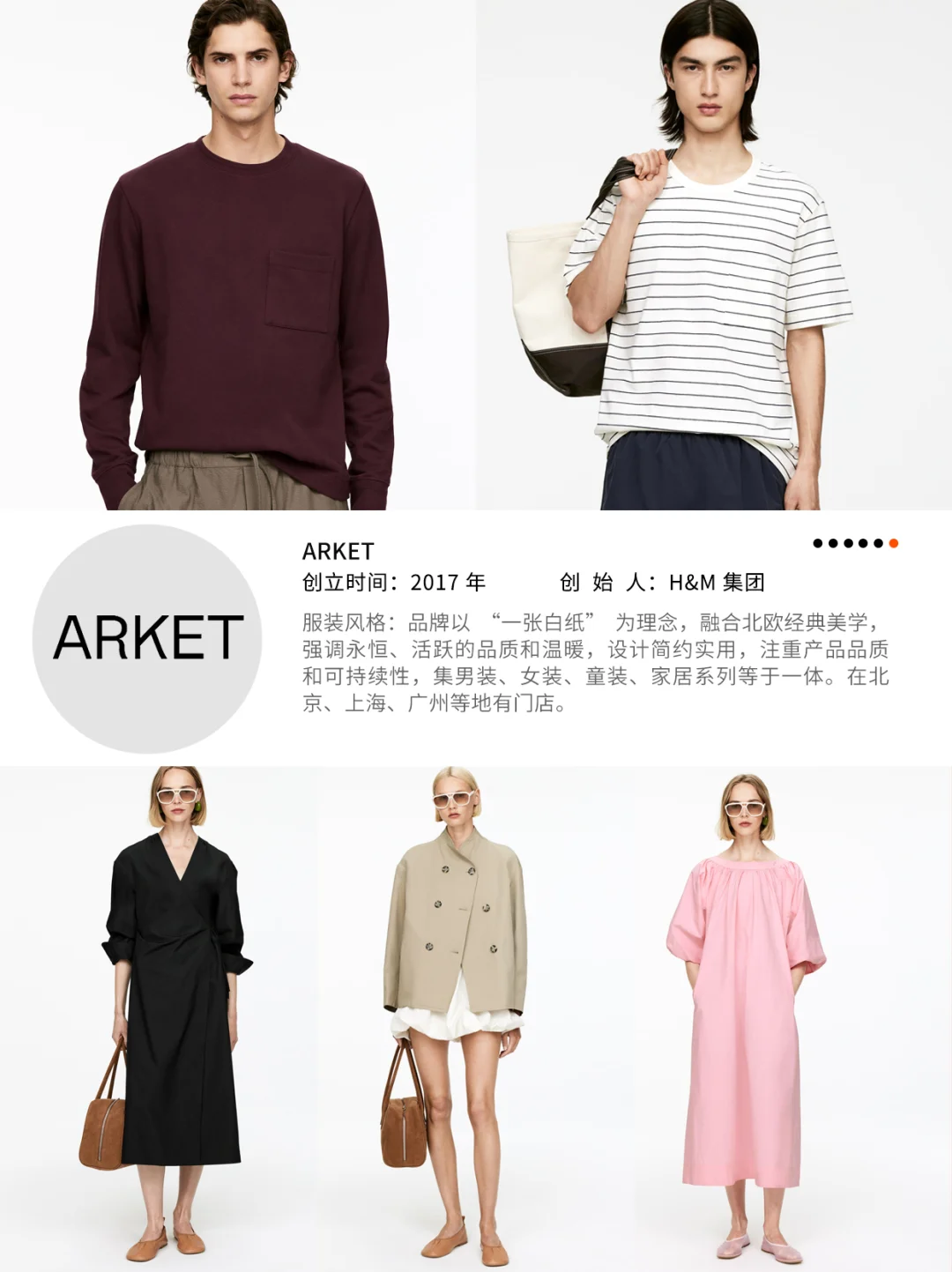 服装风格:北欧极简风,单品以胶囊系列展示,采用清新色调及具有线条感的廓形,以现代女性生活及切实需求为灵感,打造实用舒适的服装,凸显北欧极简美学理念,上海、南京、成都等地有门店。