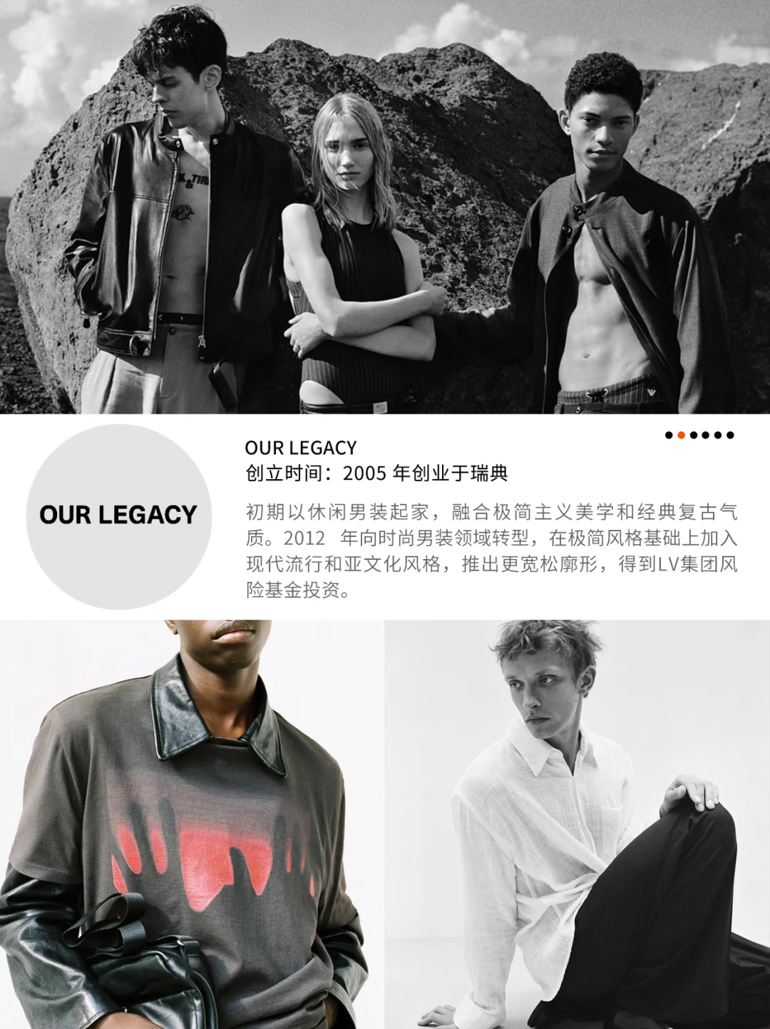 服装风格:初期以休闲男装起家,融合极简主义美学和经典复古气质。2012 年向时尚男装领域转型,在极简风格基础上加入现代流行和亚文化风格,推出更宽松廓形,得到LV集团投Z。