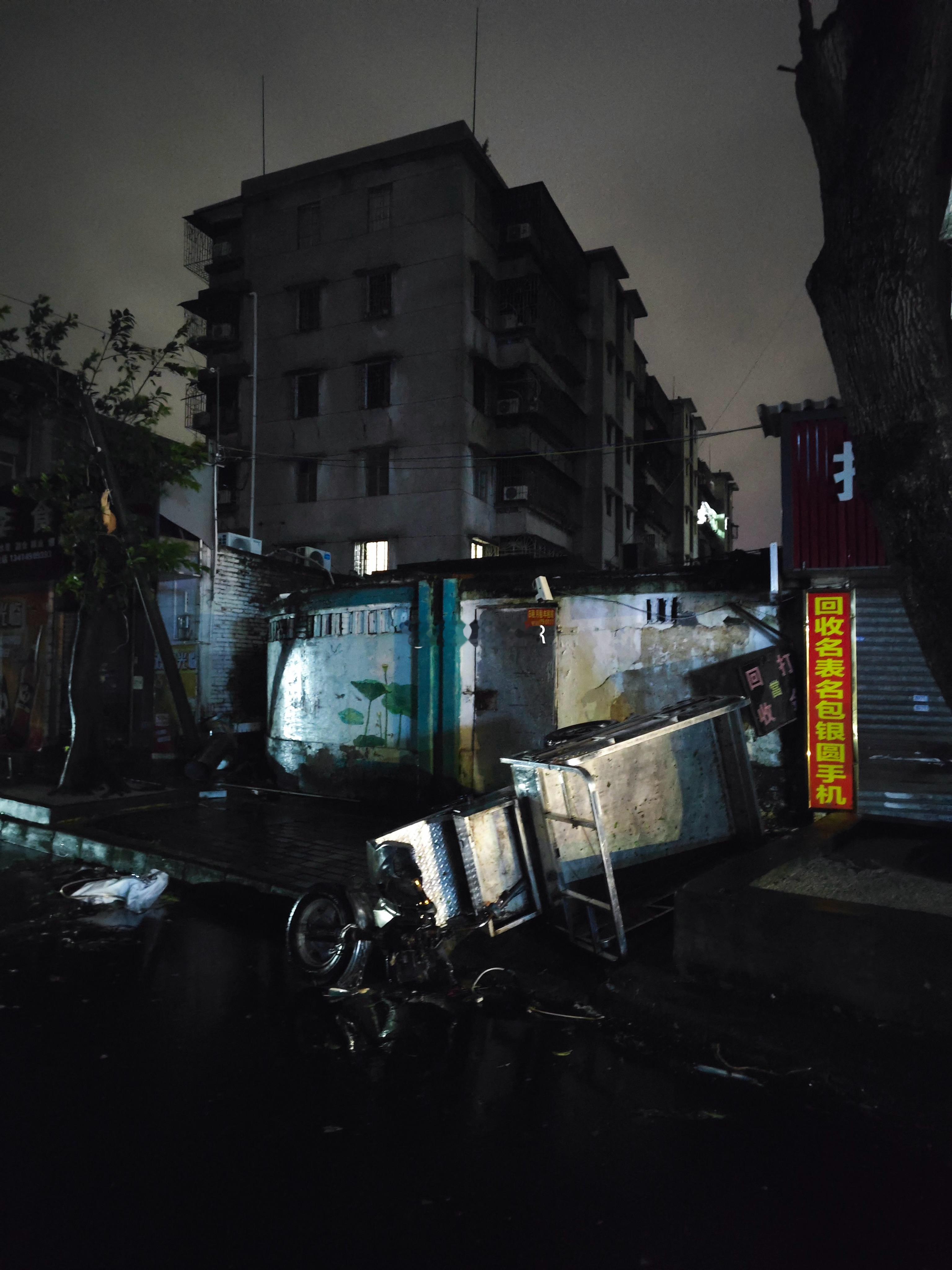 台风"麦德姆"虽已远离湛江市区,但留下了一片狼藉。各种士多店、夜宵店恢复营业倒也十分迅速,因为各种原因饿了一天的市民们也能满足下食欲。