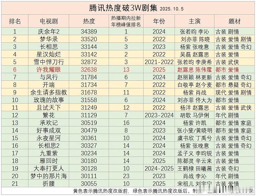 腾讯热度破3W剧集汇总(10.5)许我耀眼如果再前进一步,就和星汉灿烂会师了。