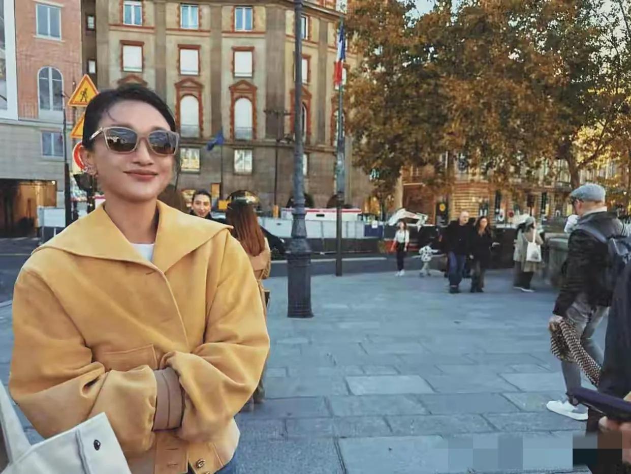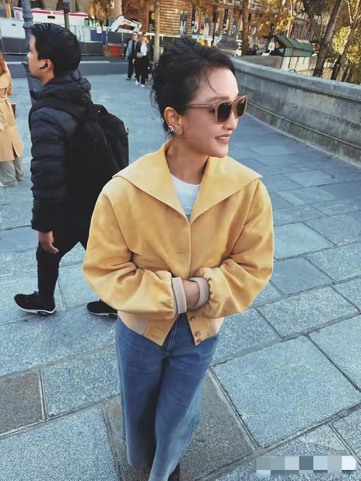 巴黎新桥区偶遇周迅:身形纤巧,单薄干瘪,个头矮小,发型利落,头顶有着丝丝缕缕的白