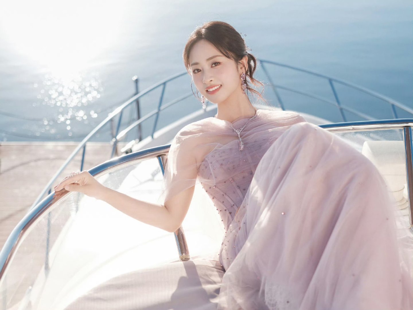 沈月湖南卫视中秋之夜出图沈月粉色亮钻纱裙月光下的粉色仙裙!沈月灵动似蝶,与魏哲鸣
