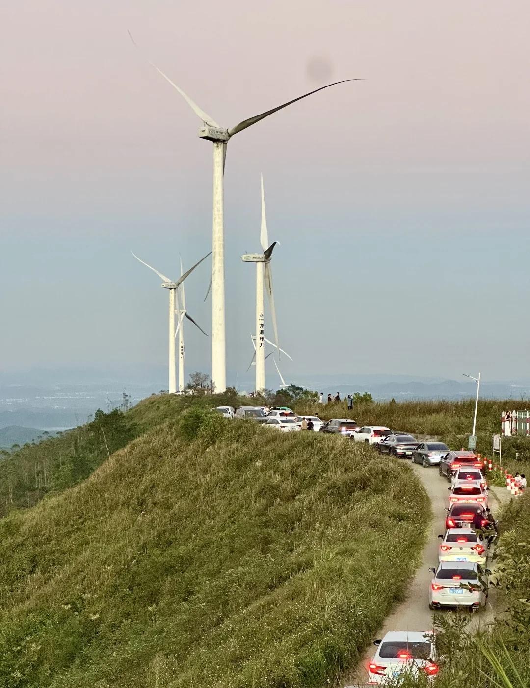 南宁周边游📸去六景霞义山一起看日落晚霞 南宁市区自驾过去1小时左右 六点就堵在山下了,六点半才上到山顶 国庆假期来看日落的人真的多,下次记得提前上山 日落没看到,但看到晚霞,一路上的坏心情一扫而光~ 南宁吃喝玩乐 风车山日落 山顶上的风景 山顶看日落