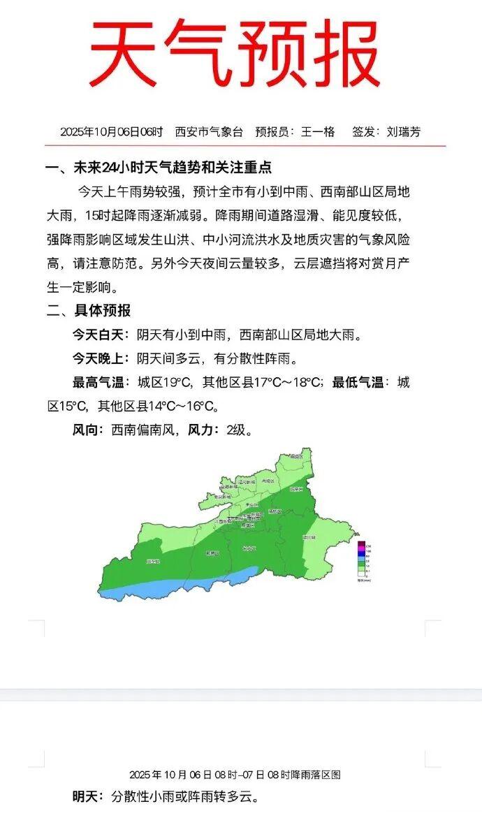 西安市气象台2025年10月6日11时发布未来一周天气趋势及关注重点: