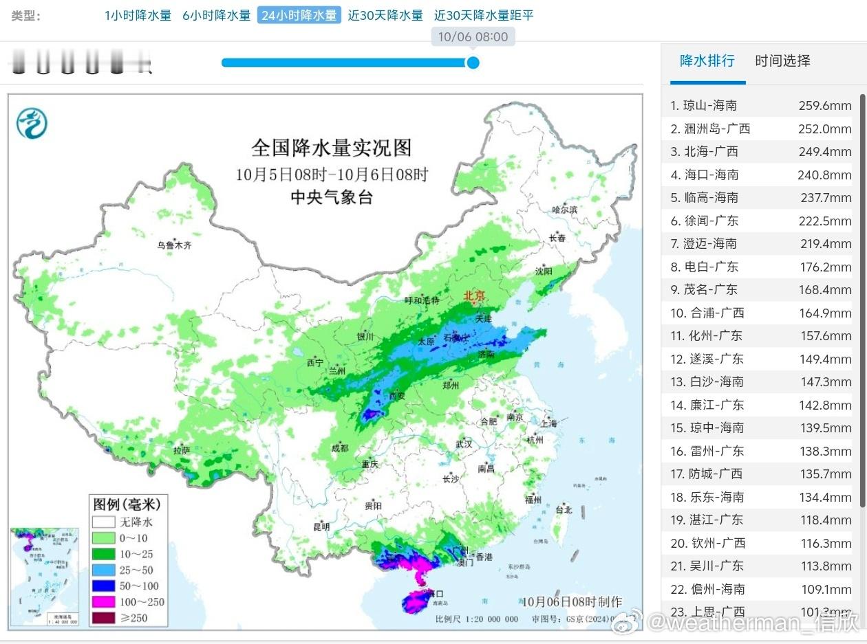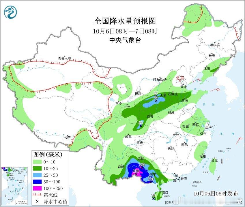 【强降雨】今天凌晨1时10分,麦德姆在广西防城港再次登陆(强热带风暴级)。昨天到今晨,因为台风麦德姆影响,海南、广东西南部、广西南部部分站点降雨量超200毫米。海南琼山和广西涠洲岛超250毫米,出现特大暴雨。从今晨雷达看,台风逆时针环流的螺旋雨带,总体继续向西推进。另外甘肃陕西山西河北山东一带,维持冷暖交汇的降水。