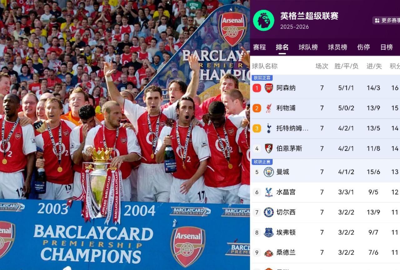英超是越来越乱了!没想到曼联跟榜首只差6分而已嘛,两场球小case啦! 现在阿森纳的榜首体验卡开始了!看看这回娜娜能在榜首的位置坐多久。 其实英超第五轮结束的时候,大家一致认为利物浦今年英超大结局了,没想到过了7轮过后,利物浦让出榜首被娜娜反超了,而前五轮表现不尽如人意的曼城现在也只差榜首3分。 我就说今年也该让阿森纳拿一次冠军了吧?今年娜娜的阵容没有短板,而且打弱队稳,打强队有韧性。有点冠军相了。