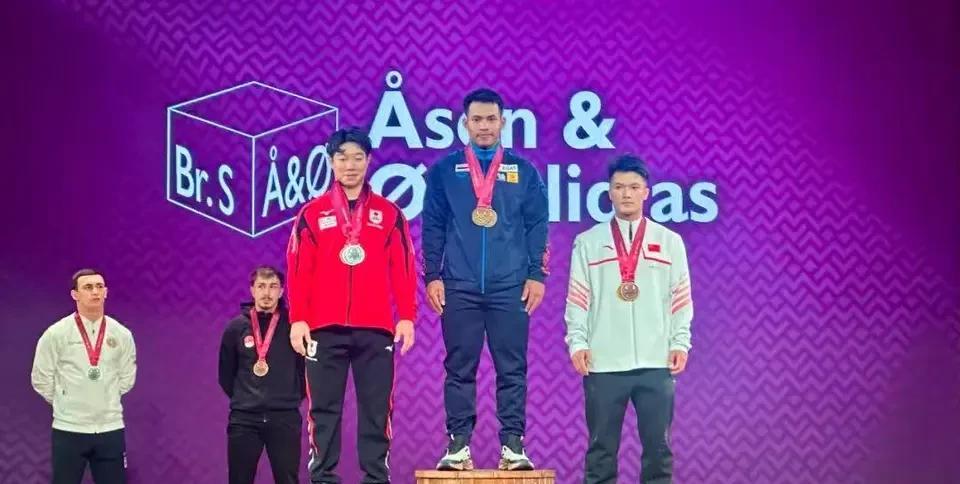 在挪威福德举行的世界举重锦标赛昨天进行了男子71公斤级比赛,中国选手何岳基在抓举环节举起157公斤,超出国际举联该级别基准世界纪录1公斤,随后又举起160公斤,两次刷新抓举世界纪录并摘得该单项金牌,这也是中国举重队在洛杉矶奥运周期新级别中创造的首项成年世界纪录。挺举比赛中,何岳基开把181公斤顺利举起,创造了总成绩世界纪录,第二把184公斤再次成功,再次刷新总成绩纪录,最终成绩定格在344公斤,随后的比赛中,三名运动员的挺举成绩超越了何岳基,也超越了世界纪录标准,最终泰国选手维楚玛举起194公斤,拿到挺举金牌,这个成绩也成为新的挺举世界纪录,最终他以346公斤摘得总成绩金牌,这个成绩也是总成绩的新世界纪录,日本选手宫本正典获银牌,何岳基获得铜牌。