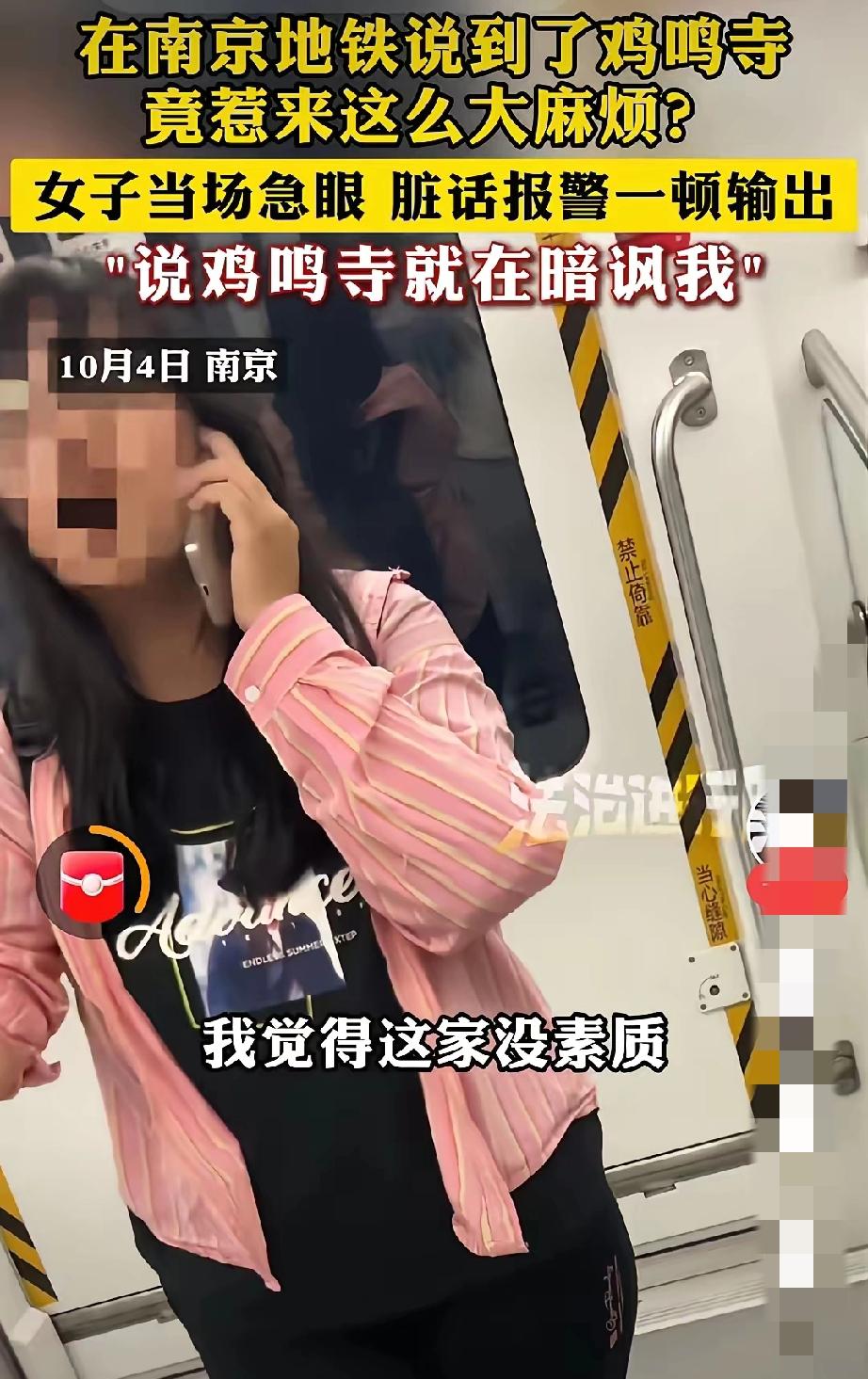 这“女权”打的鼻青脸肿啊! 刷到南京地铁这事儿,我真是哭笑不得——一家人快到鸡鸣寺站,随口提了句站名,旁边一位女士直接炸了,硬说人家在暗讽她,当场就报了警。 咱就说,鸡鸣寺叫了几百年,连河北怀来县的鸡鸣驿都是老地名,咋到这儿就成“暗讽”了?照这逻辑,黑龙江双鸭山市不得天天被投诉?真要较劲儿,是不是得去跟朱元璋掰扯掰扯?而且说句实在的,有些职业招聘要求,她这遇事就炸毛的样子,还真不一定符合。最气人的是,明明就是场误会,报假警占用公共资源,最后竟不了了之,这成本也太低了,就该追究法律责任! 真正的权益维护,从不是不分青红皂白的“玻璃心”和乱扣帽子。这种过度敏感的操作,反而让真正需要维权的人举步维艰。你们觉得,遇到这种“碰瓷式维权”,该怎么处理才合理?身边有没有类似让人无奈的事儿,来唠唠~