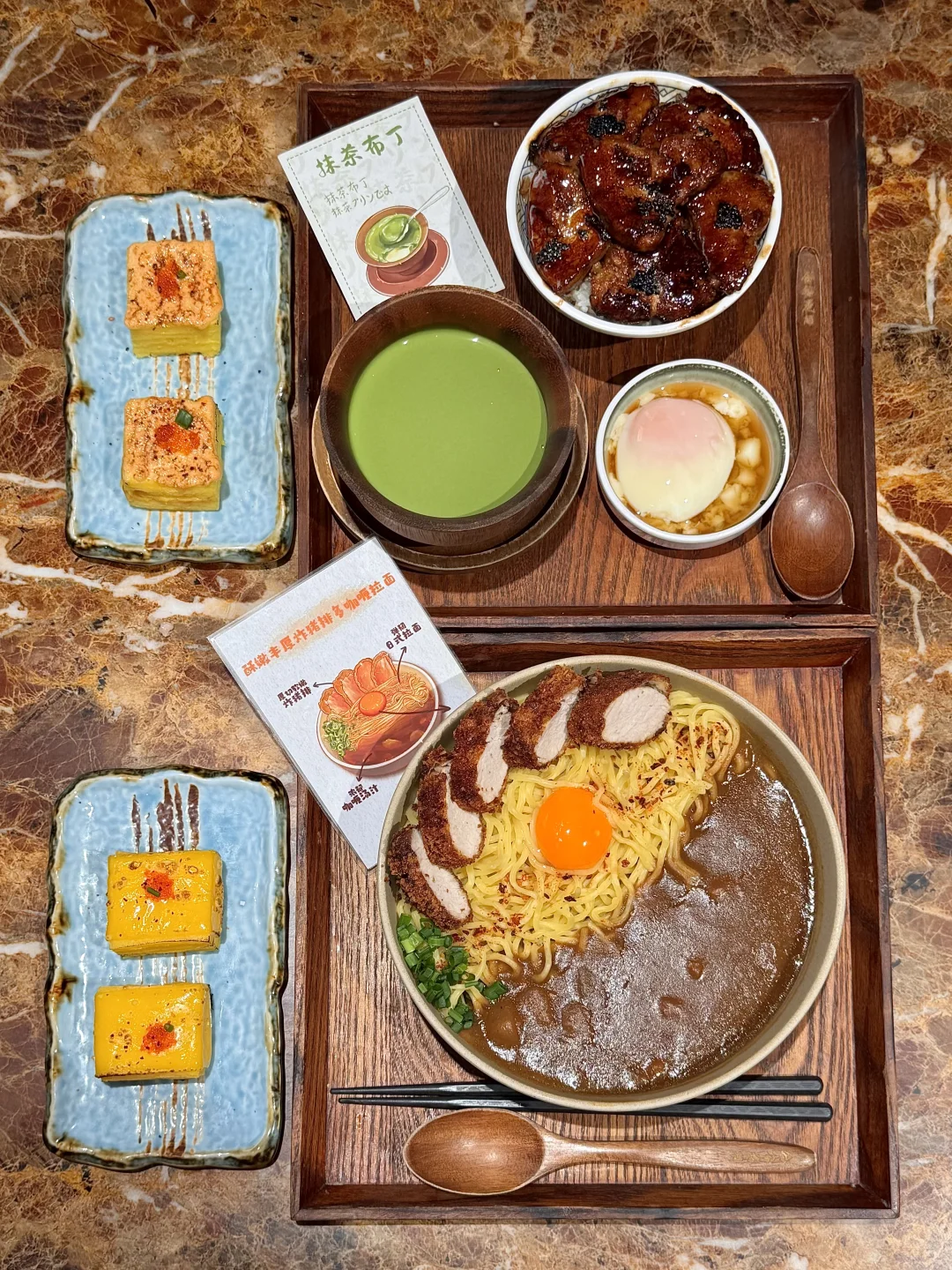 啊啊啊每一个来上海的朋友都会被我带来这!!好吃平价的日料小食堂😭进店氛围好好~不管是聚餐约饭还是一人食都很合适! · ✔️笔管锅贴 好好吃啊!蛋卷皮裹着一整只大鱿鱼煎炸!外皮焦脆内里q弹!鱿鱼入口还会爆膏😭蘸上辣酱好吃麻了!! ✔️猪排咖喱汤拉面 怎么会有这么好吃的菜!咖喱香浓面条充满韧劲~搭配厚切炸猪排hin过瘾!搅拌开蛋液口感更丝滑! 还有抹茶布丁、鹅肝饭、爆浆拉丝芝士球…全都好看又好吃,一定要点! 店名叫📍令谷花开!!