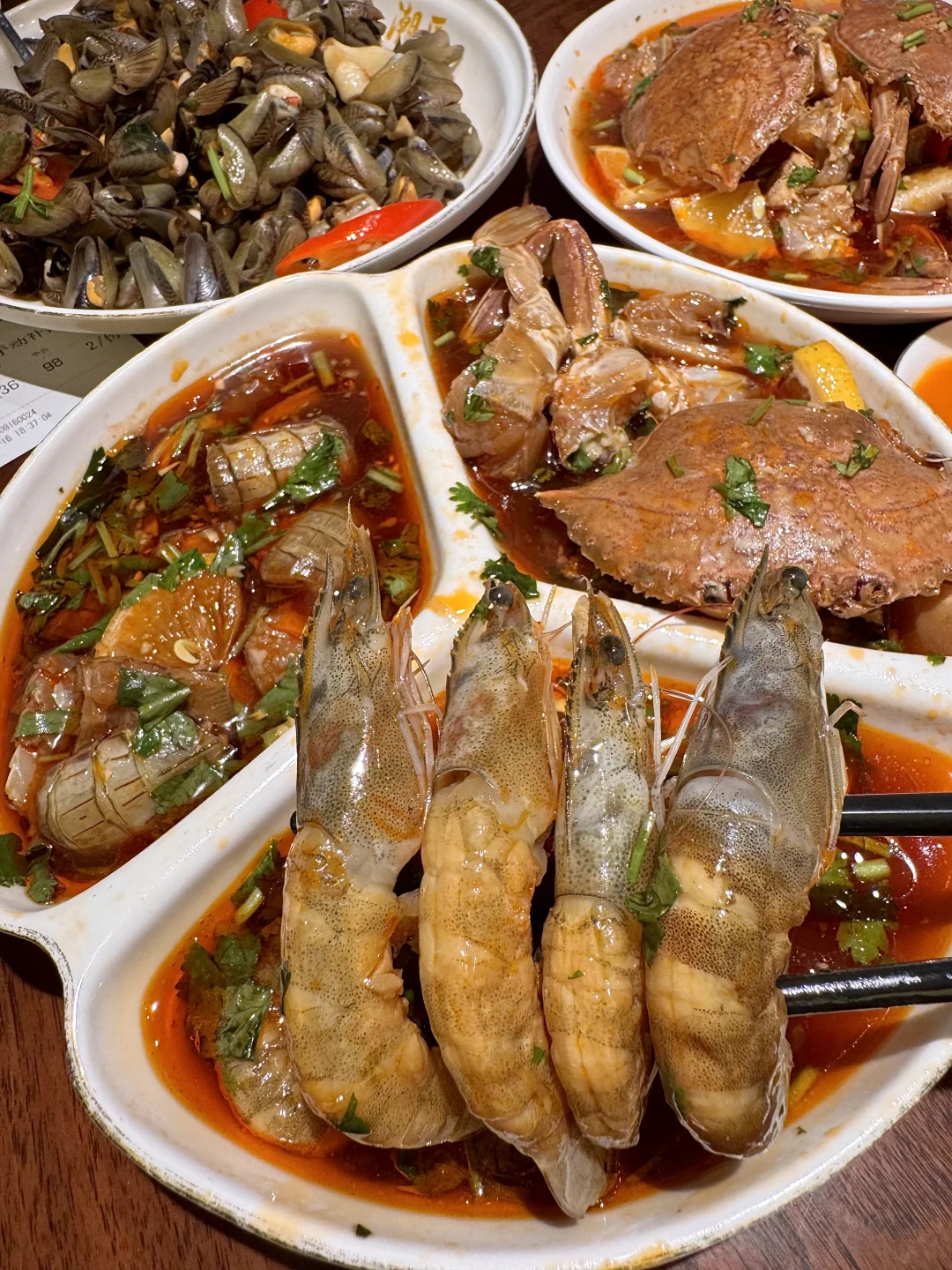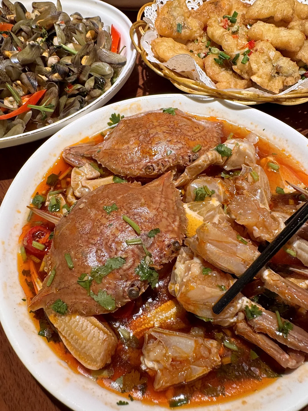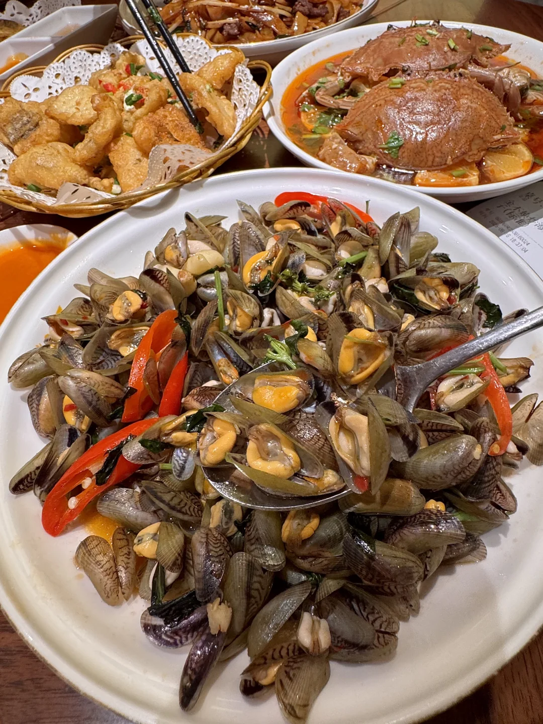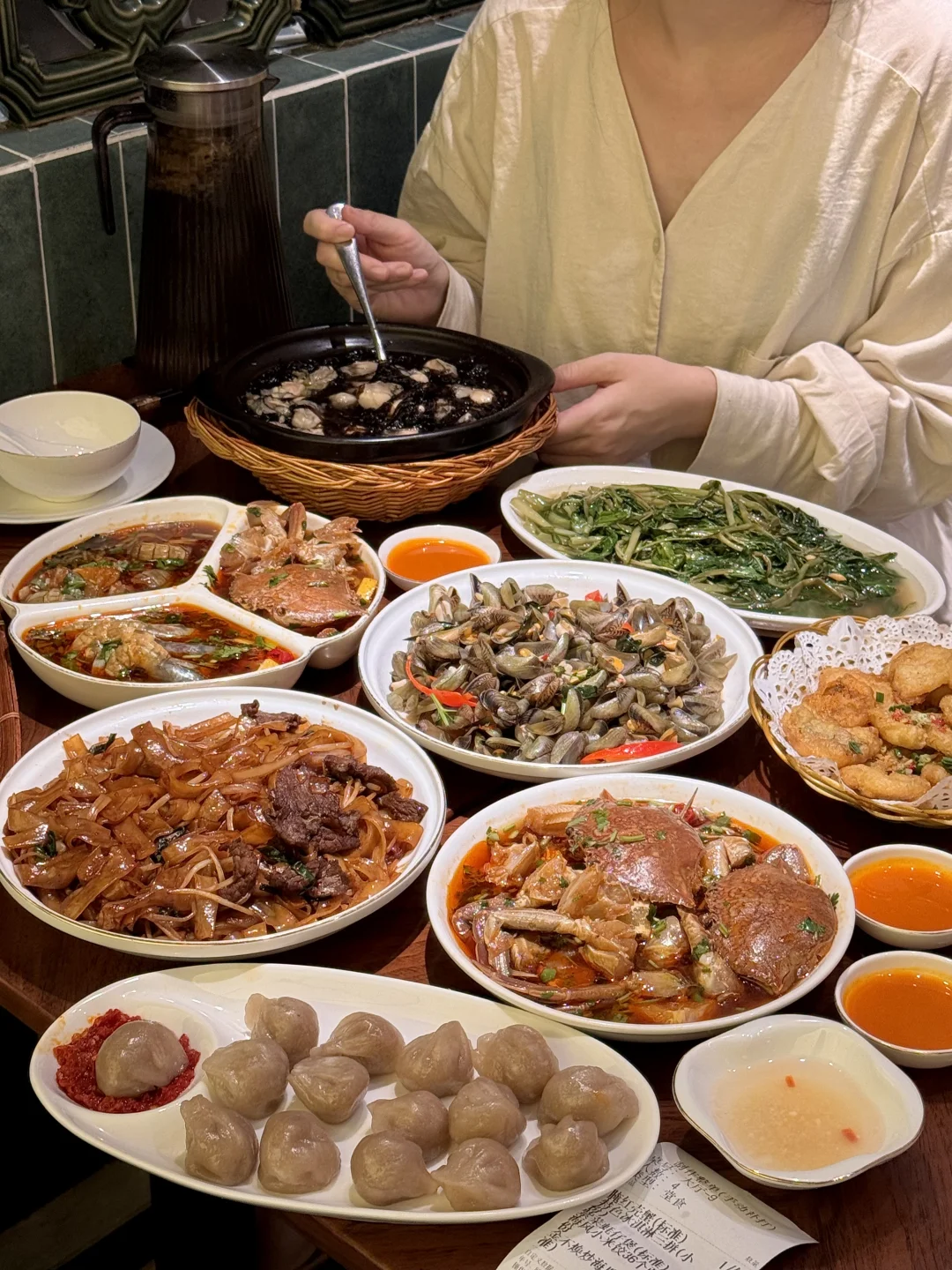 这家📍潮匠)就在长龙路上!价格实在口味正宗!生腌红壳蟹、紫菜蚝仔煲随便点都不踩雷!!尤其是这个季节的海瓜子 比我想象中还好吃!还有湿炒牛河真的香晕了……趁着知道的人还不多姐妹们赶紧去吃吃看!
