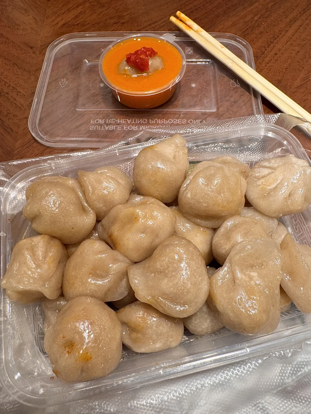 海风小米饺!!咬下去糯叽叽料很多!鱼香味的肉馅蘸点辣酱和醋…我好爱啊!
