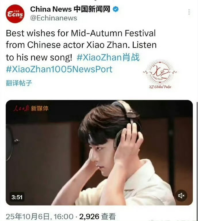 🎉肖战中秋节发布的新歌《岁岁年年》全球iTunes榜第十五名,五个国家地区第一以及多地上榜~中新社,中新网都在在外网进行了分享,反响异常热烈!