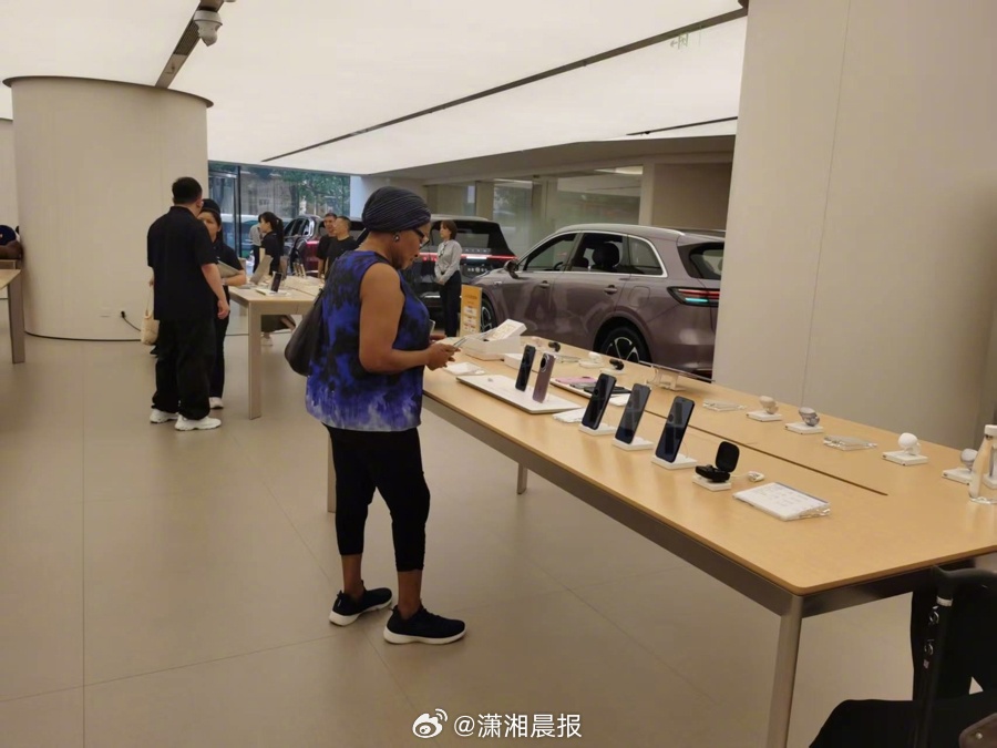 10月5日中午,记者来到地处正大广场一楼的华为旗舰店。这里正好几名老外正在挑选新上市不久的华为三折叠手机和折叠电脑,一打听,他们来自西班牙。不远处,还有一位包着头巾,黝黑皮肤的中年女老外正在试戴华为耳机。