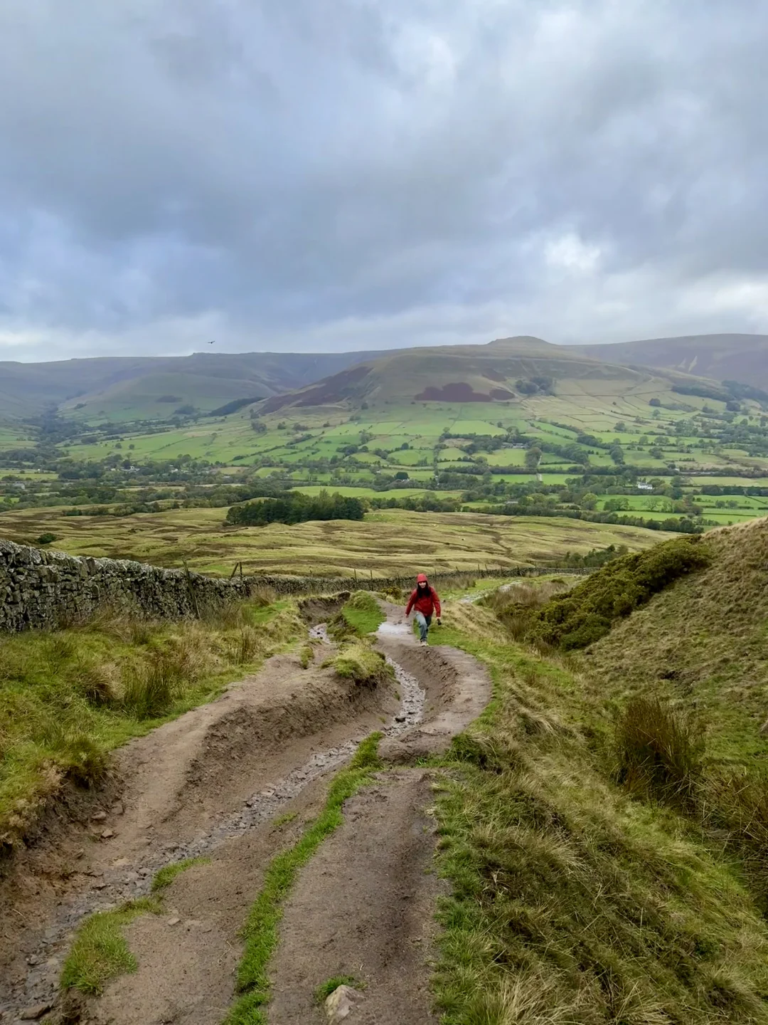 想在短时间体验峰区精华又不自驾的话,推荐经典线「Edale to Hope via Mam Tor」(AllTrails可查)。全程约10km,4-5小时能完成,沿途山谷、村庄与远处高原交替,是无车党/学生党最友好的徒步线!从 Edale火车站出发,穿过农场顺坡而上,前段缓坡草地,接着石阶通往山顶。继续走上 Great Ridge 山脊线,北侧是 Kinder Plateau 高原,南侧俯瞰 Castleton、Peveril Castle和Winnats Pass。最后经过 Back Tor 和 Lose Hill,下坡抵达 Hope 火车站作为终点。