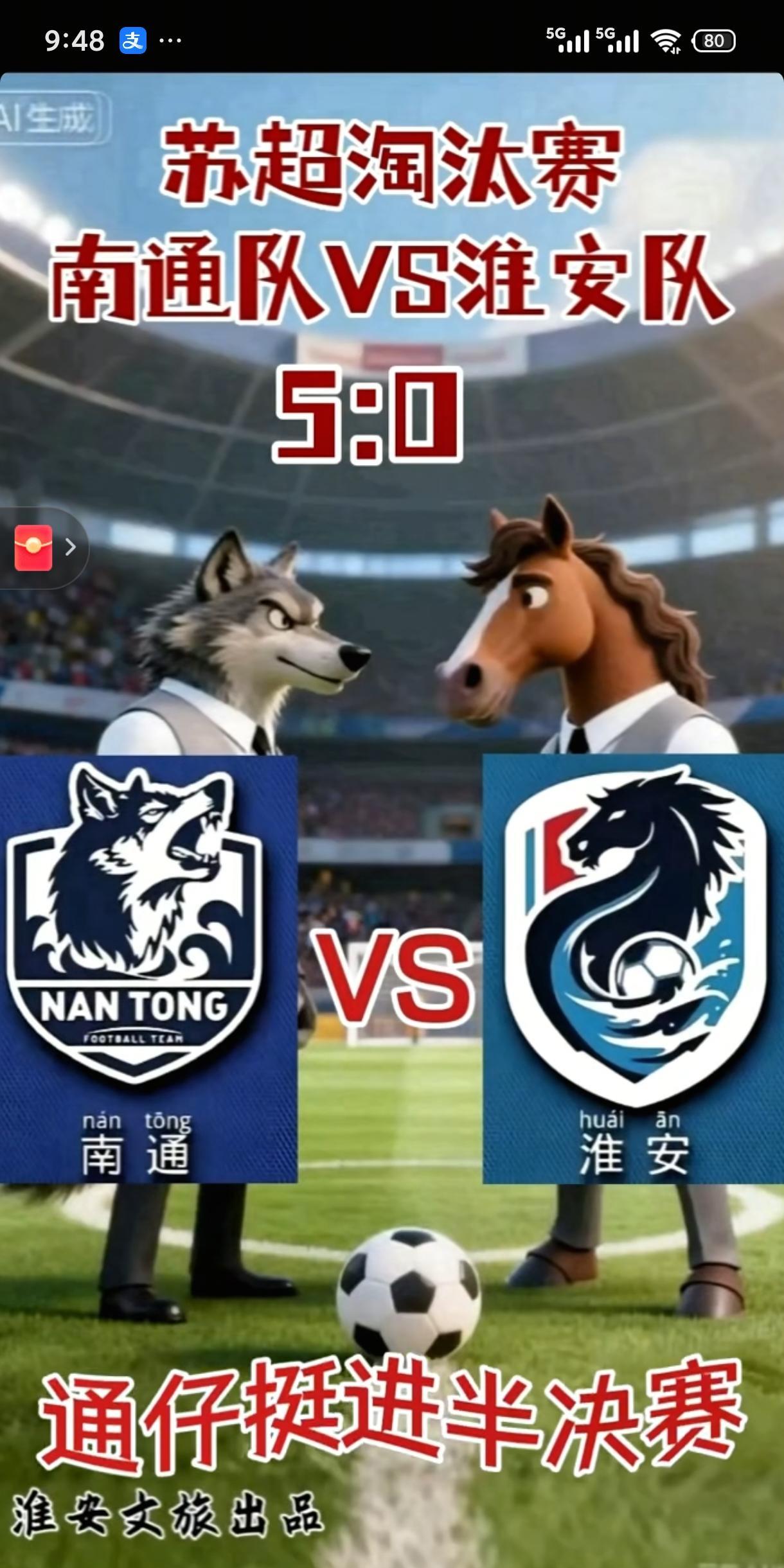 南通太狠心,不地道,一点不懂人情世故!苏超淘汰赛南通VS淮安,南通已经5:0领先了,已经已压倒性绝对优势进入四强了。 胜券在握的时候是不是应该放点水给“浪里马”淮安,人家远道而来,应该让人家进一个球,送也要送一个啊,不能让人家抱个鸭蛋回家,不能让人家脸上挂不住。 苏超就是个群众性娱乐活动,主要目的是促进销费、全民健身,再加上城市推广和流量,这才是根本,不能把淮安踢的这么惨啊! 冠亚军你把南京踢成这样的话才算是好汉,全省都支持你(徽京除外),期待你把南京踢成溃不成军。