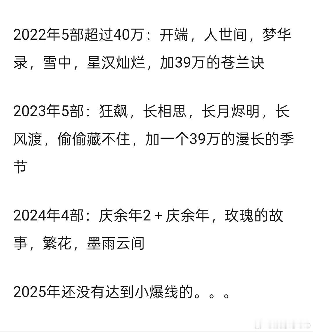 周百指15万为热播线,40万小爆线,100万➕走势强劲为大爆线,近五年只有一部狂飙