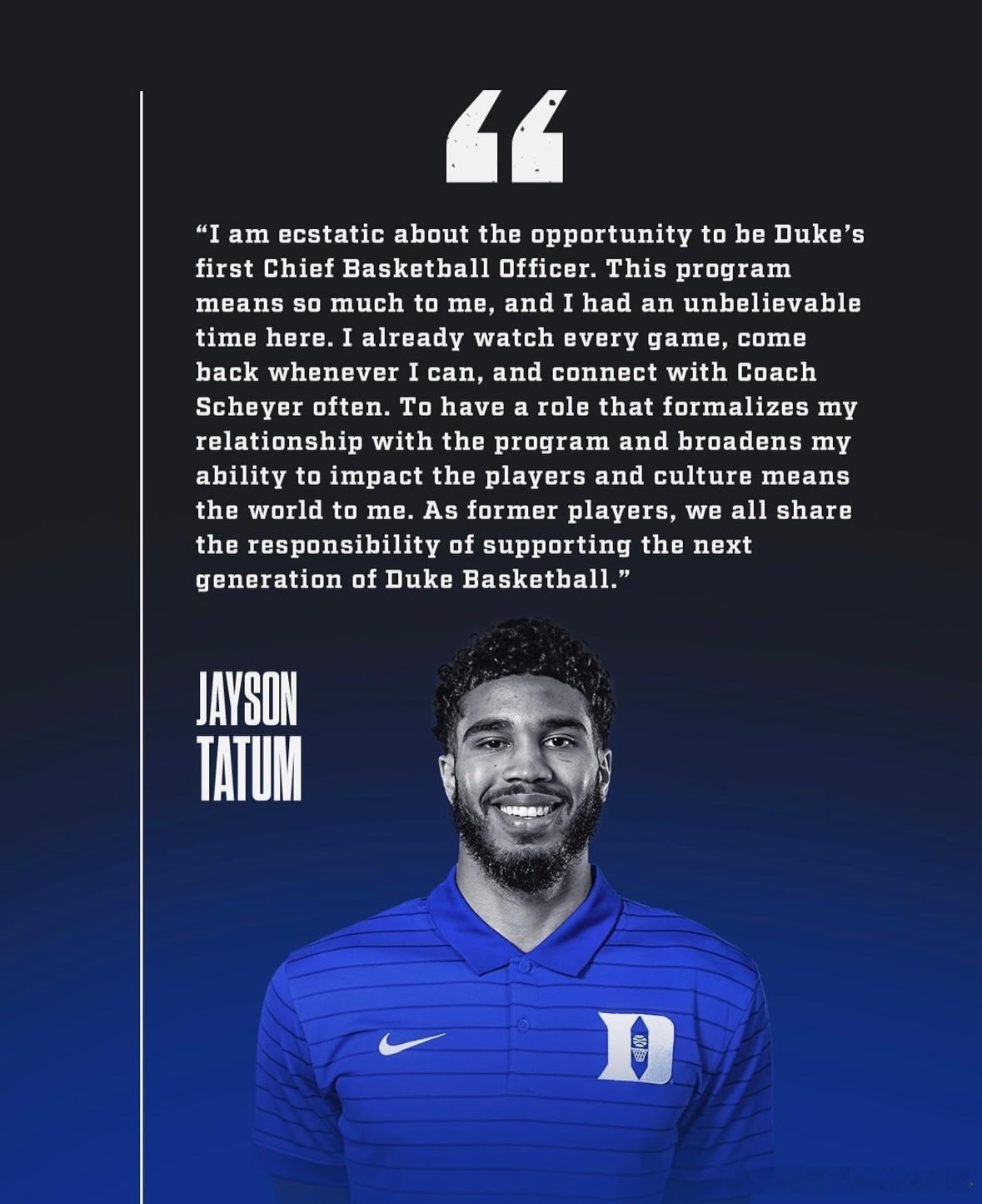 【官宣】杰森·塔图姆!成为杜克大学篮球运营总监Chief Basketball Officer