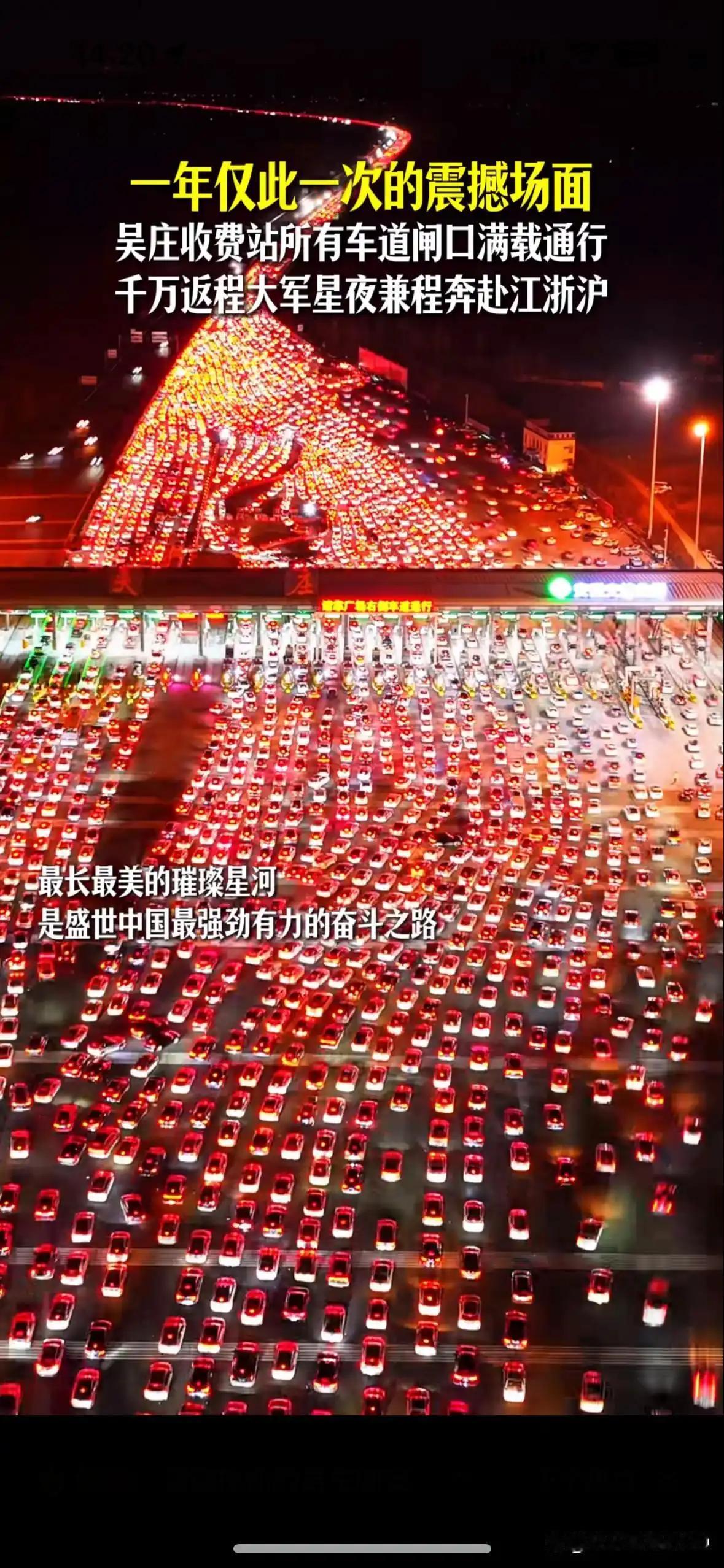 10月7 - 8日,正值国庆中秋假期返程高峰,在中国最大的收费站——安徽吴庄收费站,那场面颇为壮观。它作为连接中西部与江浙沪的重要枢纽,即便双向36个车道全部开放,依旧被返程大军“填满”。从高空俯瞰,数公里外都排满了车灯,恰似一条璀璨的“星河”。 据交警介绍,当天车流量比平日多出3倍有余,返程车辆主要源于河南、湖北、安徽等地,目的地多为上海、杭州、苏州等江浙沪城市。尽管车流量大引发了短暂拥堵,但现场秩序井然。交警运用远程诱导、分时放行等举措保障车辆通行。这一景象既凸显了假日经济的活力,也反映出区域间人口流动频繁,是长三角一体化的鲜活写照。 返乡车流量大 吴庄收费站 国庆高速收费站 全国最大收费站