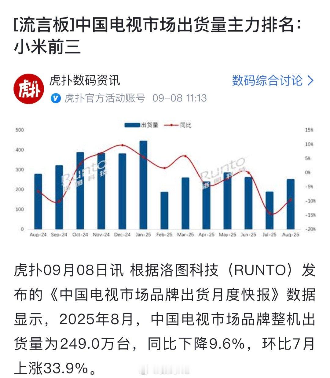 这些人真是一点记性不涨,当初带小米空调是代工,现在自建厂了也不说话了,又说电视,一看八月小米电视市场份额前三,就不难理解了。