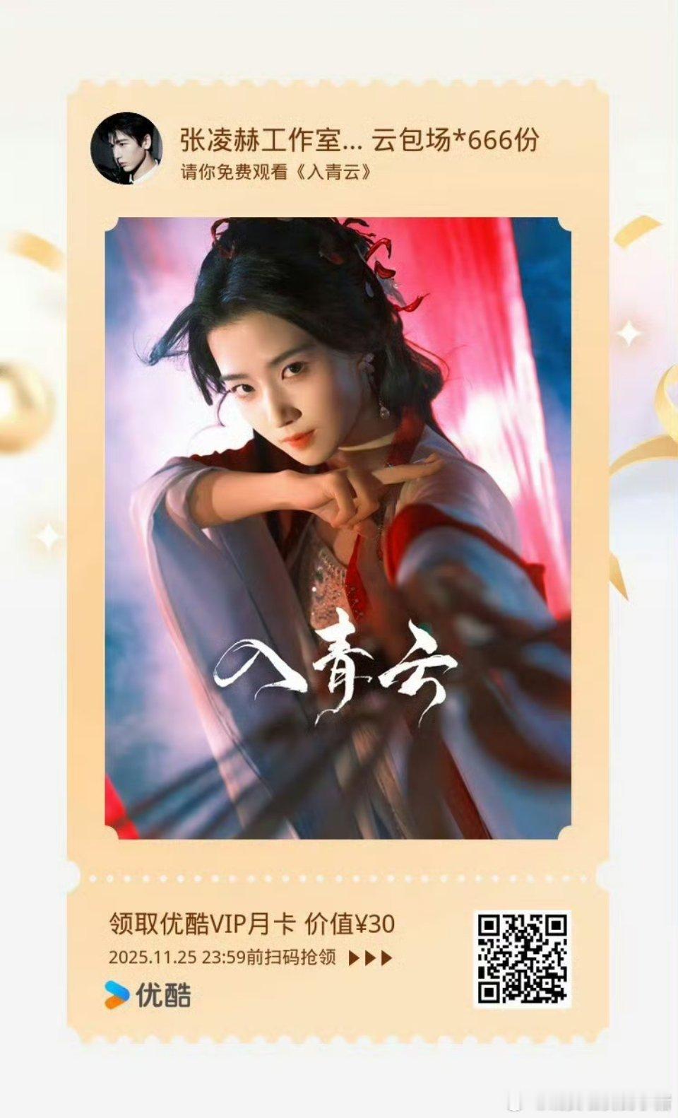张凌赫宣传卢昱晓入青云,还包场了 666 份,人帅心善,期待张凌赫作品《逐玉》和《这一秒过火》🥳🥳