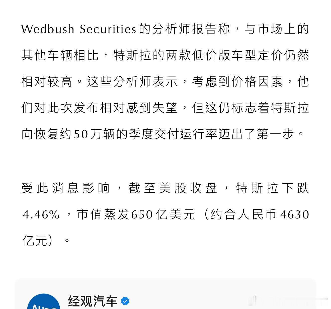 特斯拉廉价版发布后,股价大跌,看来资本市场不太看好这款车的销路啊[思考]不知道国内市场准备卖多少钱