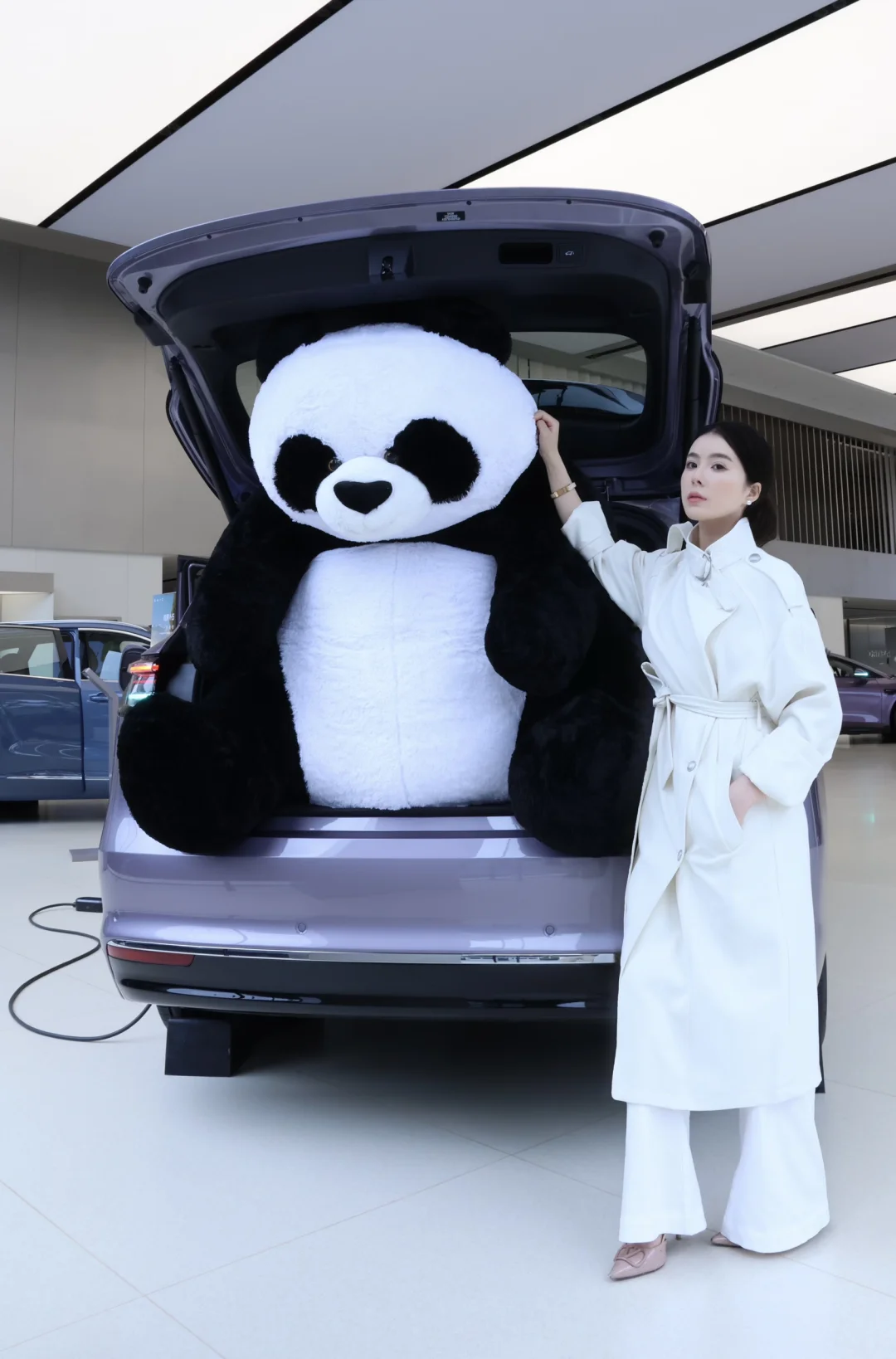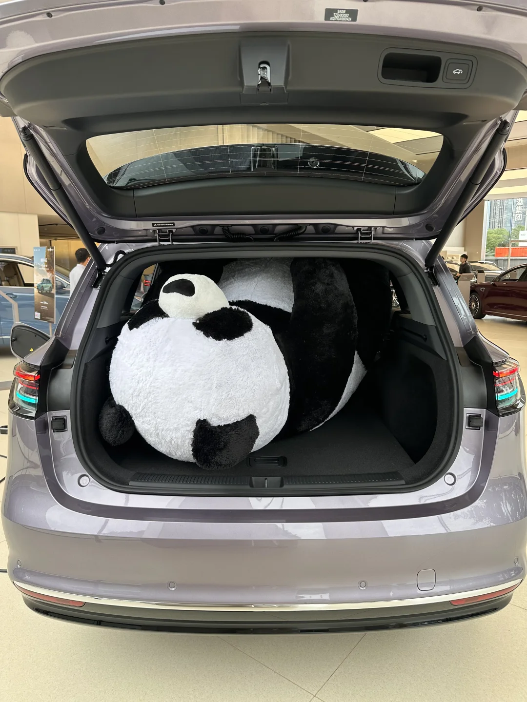 后排放倒秒变1837L大床,巨型熊猫玩偶放进去仍有空隙,不敢想露营躺平有多爽,尚界H5包能装啊!