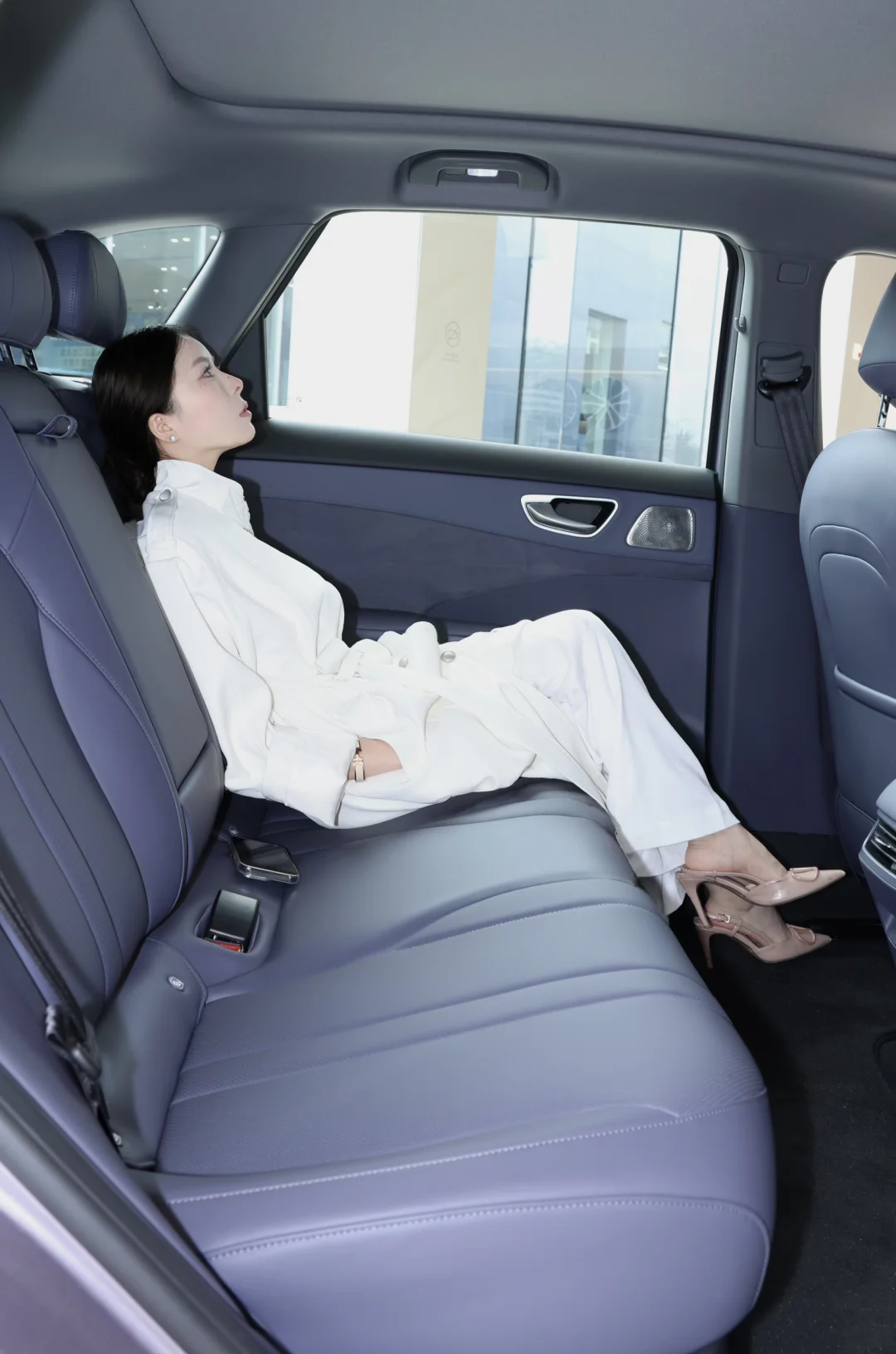 后排座椅空间巨宽敞,27°/32°调椅背超舒适