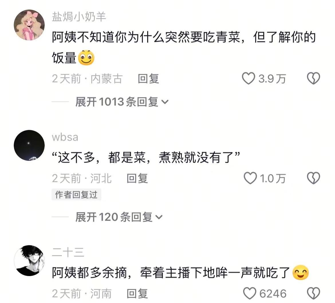 妈妈不知道你为什么突然要吃青菜,但了解你的饭量[可爱]