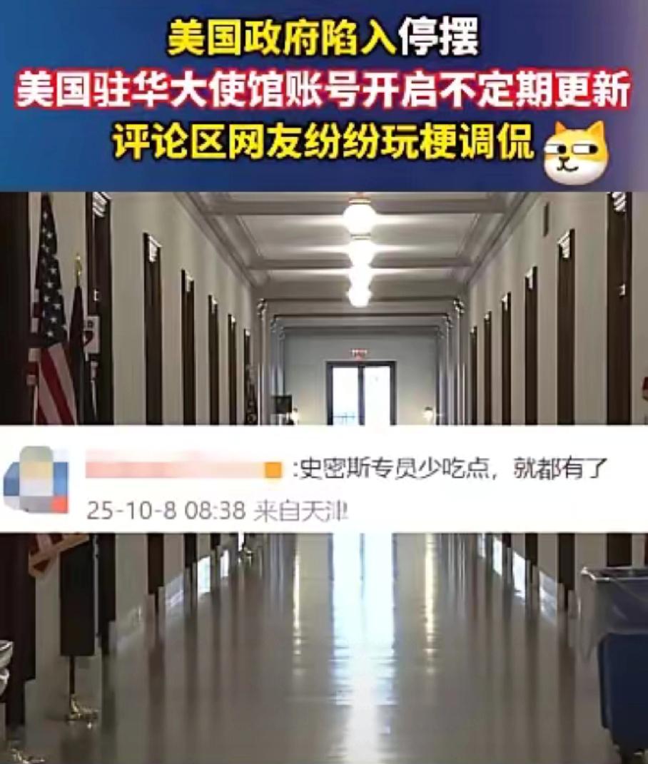 难怪大家伙耳根子清静,原来是“断粮”了,老特功不可没 看到这一幕,想想斯密斯专员早前的信息,我觉得吧,老特真的做了一件特别有意义的事儿。 白宫这个门不开,挺好! 尽管老特把锅甩给了民主党,但自己作为一把手的魄力让人钦佩,就凭这一点,我支持老特拿诺贝尔和平奖。 毕竟各种噪音在老特的干预下,安静了,各种“颜革”在老特的釜底抽薪下,销声匿迹了,即便是暂时性的,也贡献极大。 您说对吧?