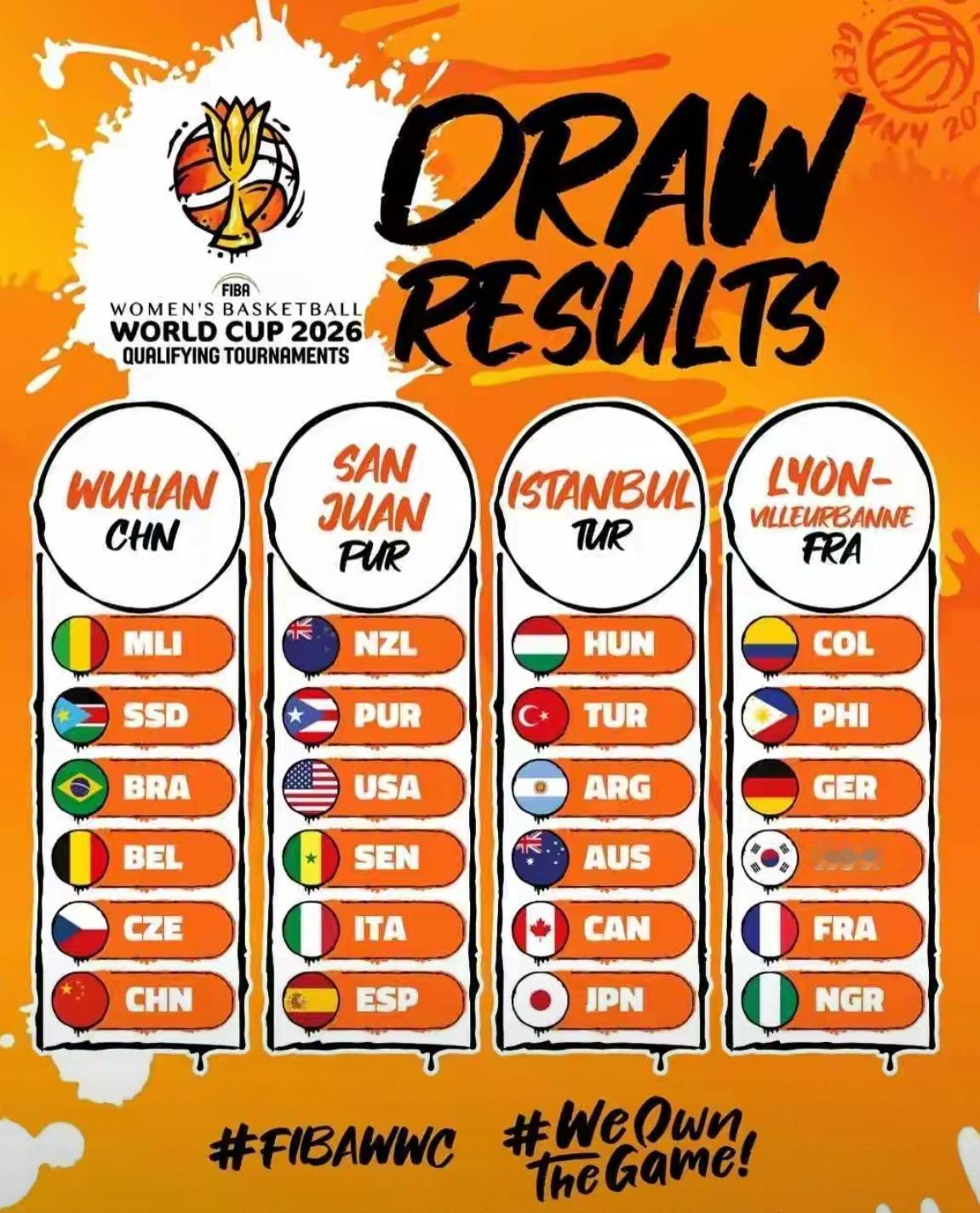 北京时间10月8号凌晨,2026年国际篮联女篮世界杯预选赛抽签仪式开始了。这次抽