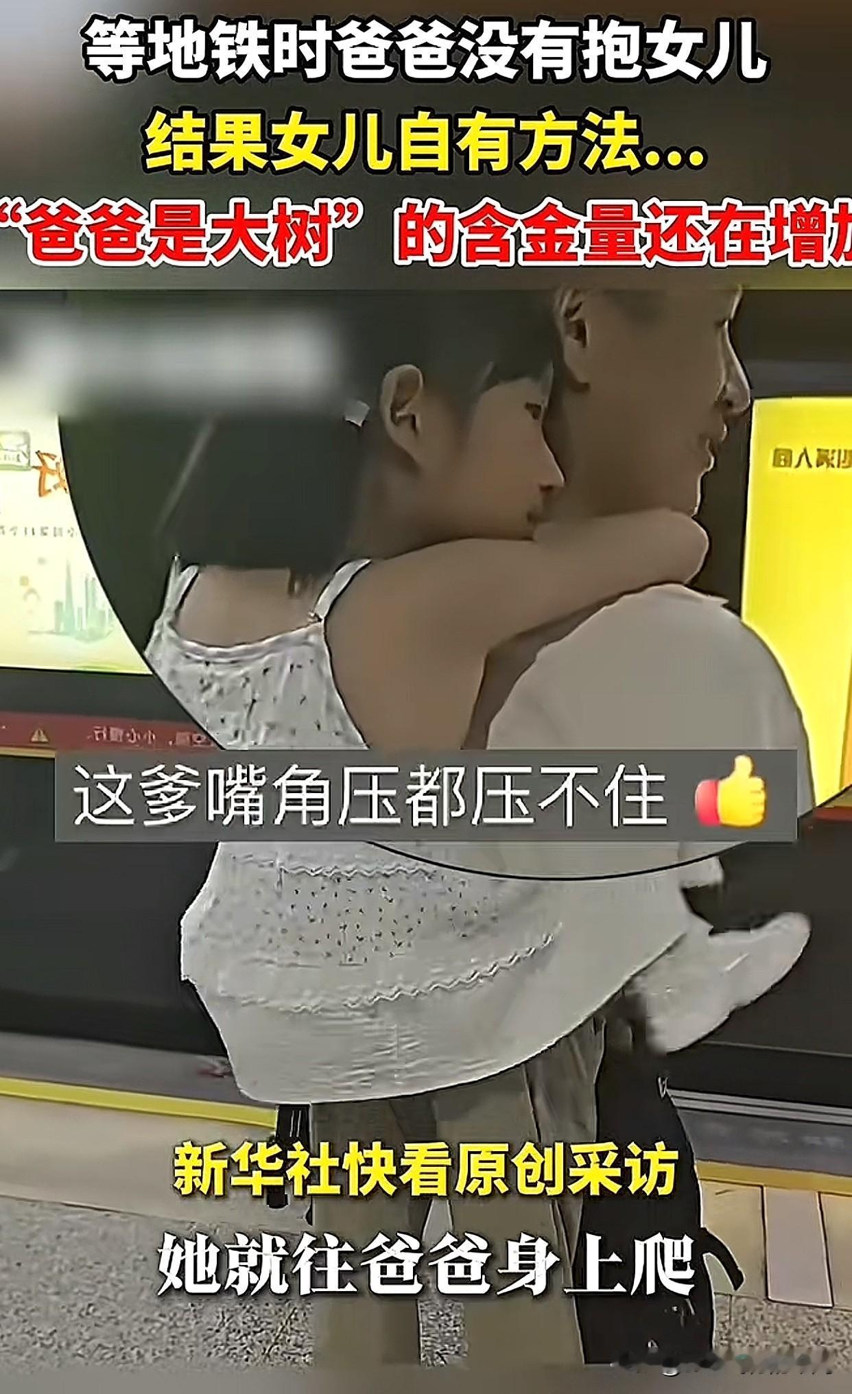 “这一刻幸福具像化了!”广东一位爸爸等地铁时,手里拿着东西没空抱女儿,没想到小姑娘居然自己想了个办法,像只小树袋熊似的,直接爬到了爸爸背上。 这小家伙先是使劲一跳,三两下就爬到了爸爸肩膀上,还调皮地翻到前面要抱抱。爸爸一脸无奈,但眼里全是藏不住的笑。 说实话,我觉得这种“爬背求抱抱”的方式,其实藏着挺好的教育方法。小孩子通过身体接触来感受爱,爸爸没有直接抱她,但也没拦着,既给了温暖又不惯着。要我说,比起动不动就哭闹,这样自己想办法的孩子反而更独立。 好的亲子关系真不用花太多钱。一个可靠的背影,一份耐心的陪伴,就是给孩子最好的礼物。让孩子在爱里自由成长,这才是真正的富养。 每个孩子都需要这样一个依靠,不用时时刻刻捧在手心,但永远可以安心依靠。这样的童年,才是真的温暖。