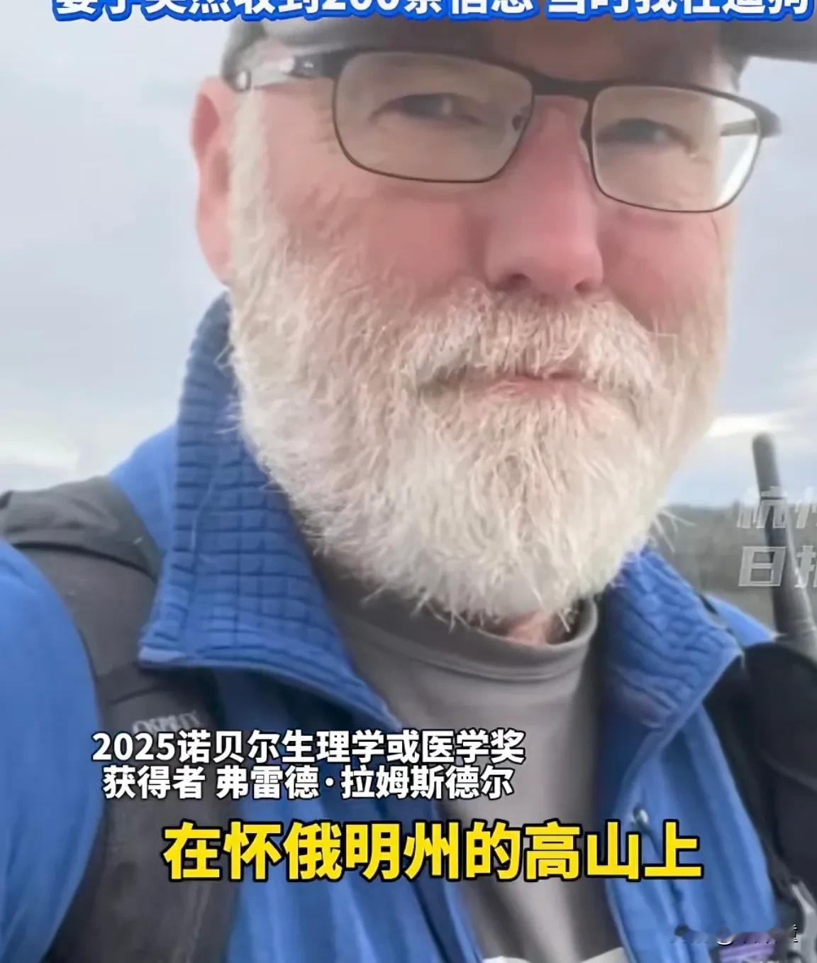 史诗级松弛感来了! 诺贝尔奖获得者弗雷德透露,公布获奖的时候,他和妻子正在露营,很偏僻没有信号,还讲述他度假看到了野牛、羚羊、驼鹿等,也根本不相信自己获奖! 听到他的采访,发现这才是史诗级松弛感,让人羡慕不来!