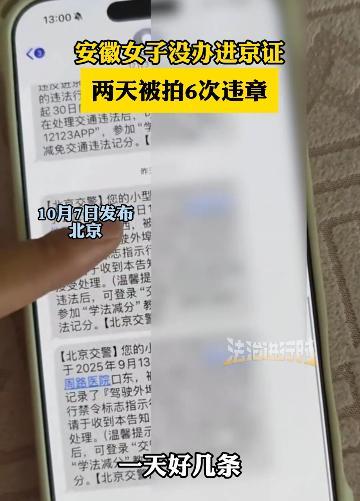 “被气笑了!”安徽一女子在放假前开车去北京,可两天时间下来,竟然收到了6条违章信息,她自己也不理解,为什么走哪都被拍,后来一打听才知道,是因为自己没办进京证。网友:她要不说我也不知道 10月初,安徽的王女士对着手机屏幕懊恼不已。 她趁着假期自驾去北京旅游,本想好好放松,没想到一路都在“吃罚单”,拍视频吐槽时还忍不住念叨。 我开车规规矩矩的,没闯红灯没乱停车,怎么走哪都被拍啊? 王女士的困惑在打听后才解开,问题出在“没办进京证”上。 这个她压根没听说过的证件,成了这次旅行最意外的“拦路虎”。 而她的经历,并非个例,每年都有不少外地车主因不了解这项规定,在北京街头栽了跟头。 事情要从假期前说起,王女士特意提前规划了自驾路线,从安徽出发一路向北,想着到北京后逛遍景点。 刚进六环没多久,手机就收到了第一条违章短信,她没太在意,以为是误拍。 可接下来的48小时里,短信一条接一条冒出来,内容全是“机动车违反禁令标志指示行驶”。 握着手机的手都有点发僵,她反复核对行程,确认自己没压线、没超速,更没违停,“脑子一下子懵了,导航也没提示不能走啊,怎么就到处是违章?” 直到同住酒店的游客提醒她“是不是没办进京证”,王女士才恍然大悟。 查询规则后她更崩溃了:未办理进京证进入北京六环路以内,每次罚100元记3分,而且4小时内没驶离或补办,还会重复处罚。 这意味着她两天里的6次违章,不仅要掏600元罚款,驾照还得记18分,一本驾照的分数都不够扣。 早知道这么严,说啥也不开车来了,以后再也不自驾来北京了!王女士的语气里满是懊悔。 然而王女士的遭遇并非偶然,北京顺义区的京沈路与安宁大街交叉口,仅这一个点位就有多位外地车主栽过跟头。 冀牌车主李先生就因忘了办进京证被拍,罚了100元记1分。 更夸张的是,有车主一年因类似问题被扣了108分,直言“进了五环就像闯迷宫,不知道哪条路能走”。 这些案例背后,藏着外地车主对进京政策的普遍陌生。 这张薄薄的证件,可不是近年才有的“门槛”。 随着北京交通压力增大,政策不断调整,但政策收紧的背后,是北京治堵的艰难。 更棘手的是,不少本地人为避摇号去外地买车,2013年这类车辆就达1.4万辆,全扎堆在京城路面上,进一步加剧了拥堵。 面对王女士的经历,网友们吵成了两派。 有人觉得“办进京证太简单了,手机下个‘北京交警’APP分分钟搞定,一年能办12次,每次用7天,还不要钱,咋就不办呢?” 也有人共情道:“不说真不知道,我去过北京三次都没听说要办证,外地人哪能摸清所有城市的规矩?” 甚至有网友调侃“该让北京车办‘出京证’,才算公平”。 北京市交管局的工作人员也解释,这是为了督促车主尽快驶离或补办证件,并非刻意为难 其实办进京证真不算麻烦,在“北京交警”APP提前1到4天申请,填好车辆信息就能办,全程免费。 可问题就出在“信息差”上,像王女士这样偶尔自驾的游客,很难主动去查这类地方性政策。 王女士的那句“怎么走哪都被拍?”,问出了不少外地车主的困惑。 但换个角度想,北京作为人口超两千万的特大城市,机动车保有量早已突破600万辆,没有这类管控措施,交通恐怕早就瘫痪了。 政策的初衷不是“排外”,而是平衡城市运转与市民出行。 如今无论是北京的进京证、上海的内环限行,还是广州的开四停四,各大城市都有自己的交通“规矩”。 王女士的6张罚单,更像一记醒目的提醒:开车出门前,花几分钟查查目的地的车辆政策,比事后懊恼管用得多。 毕竟,顺畅的旅途从不是“跟着导航走就行”,而是“带着规矩走四方”。 信息来源:法治进行时2025-10-07发布视频