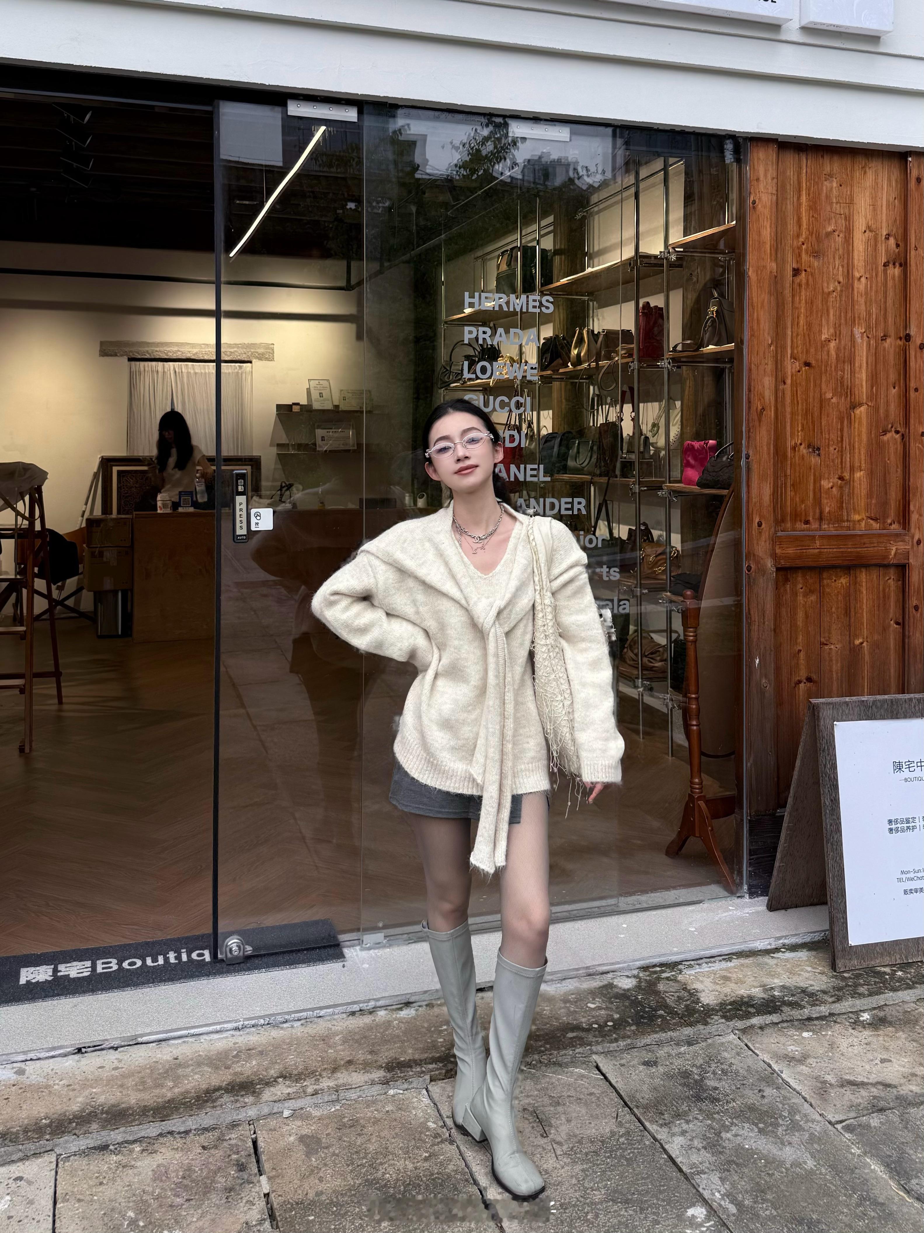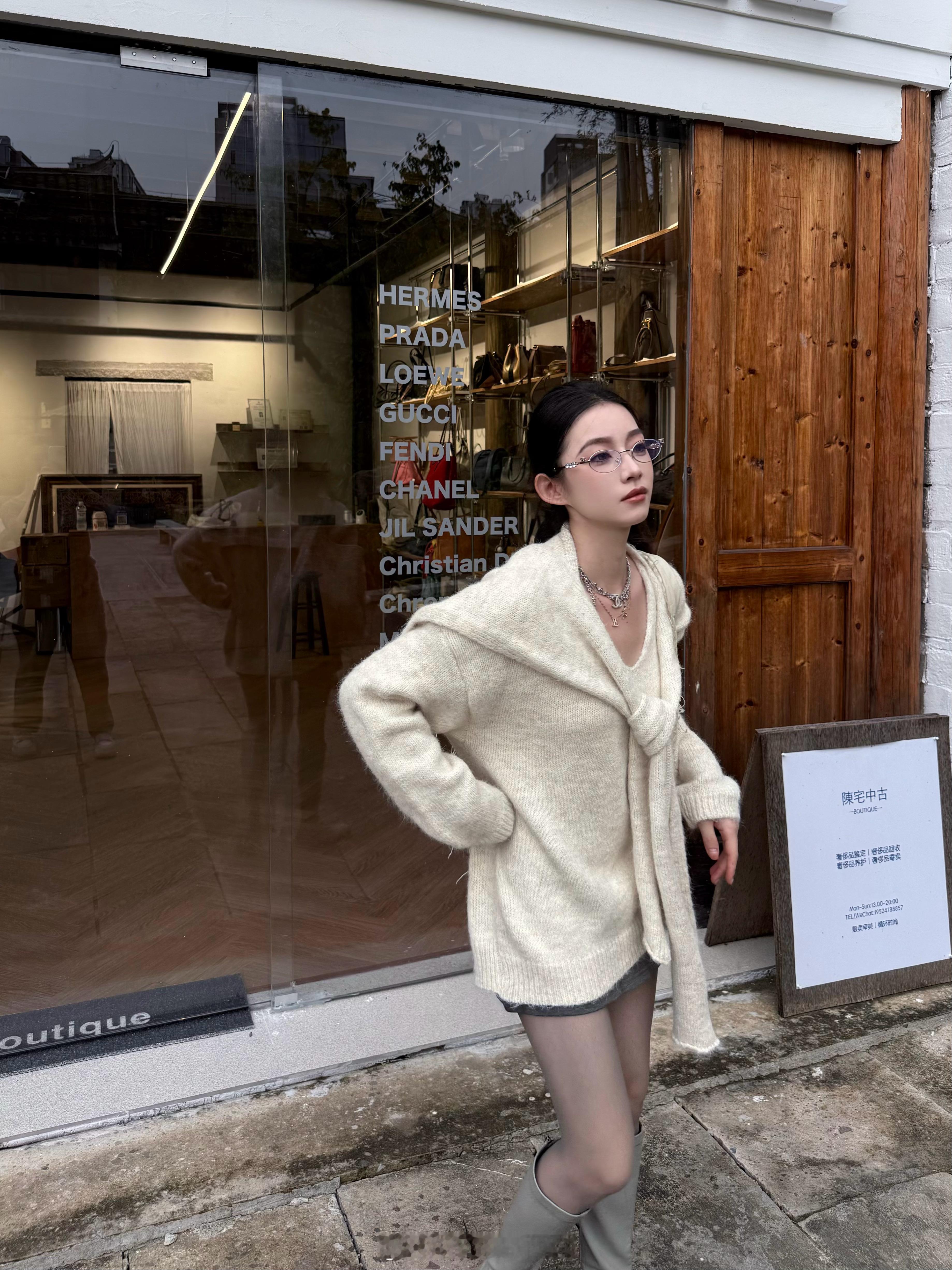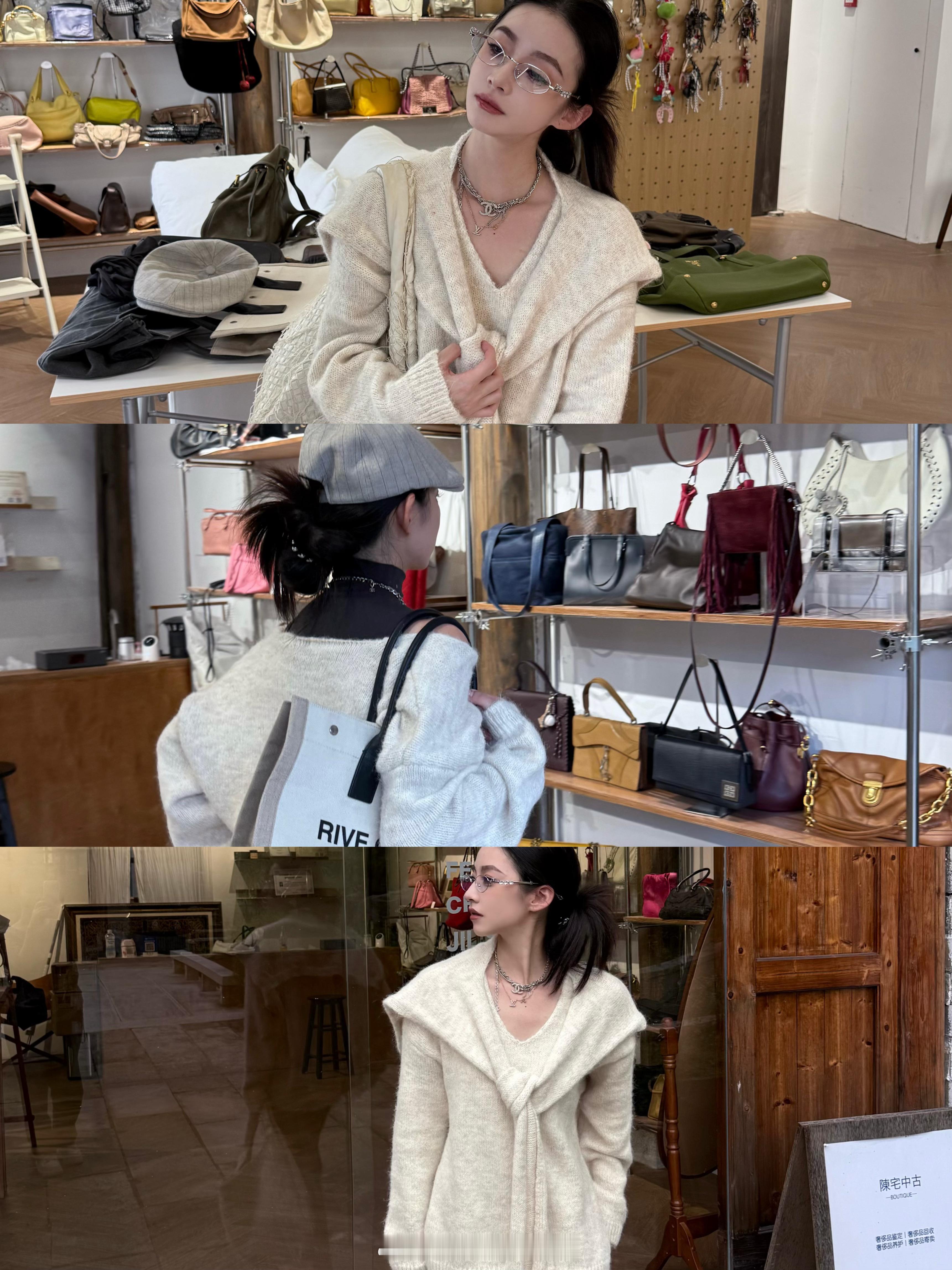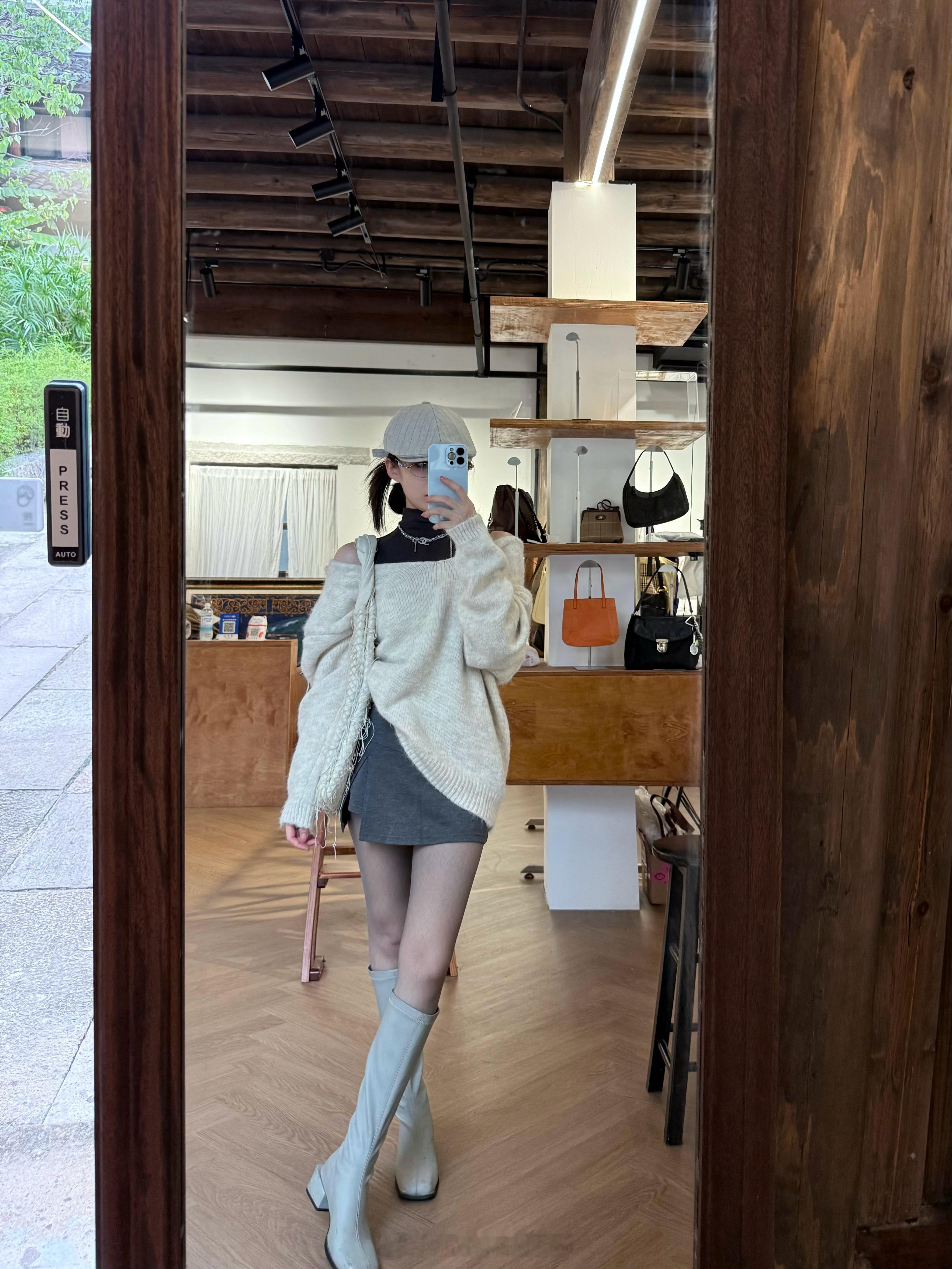 🐚糯米白毛衣露肩or叠穿披肩两种穿法都很洋气!轻轻松get时尚博主感~